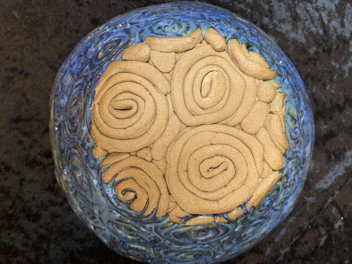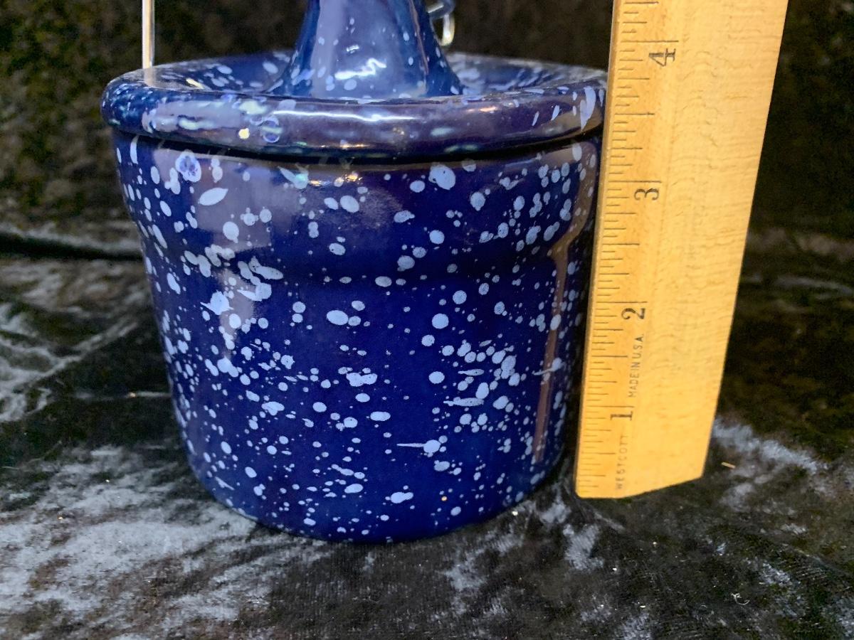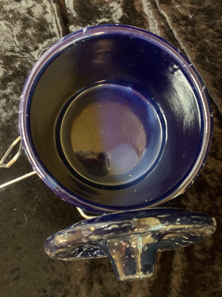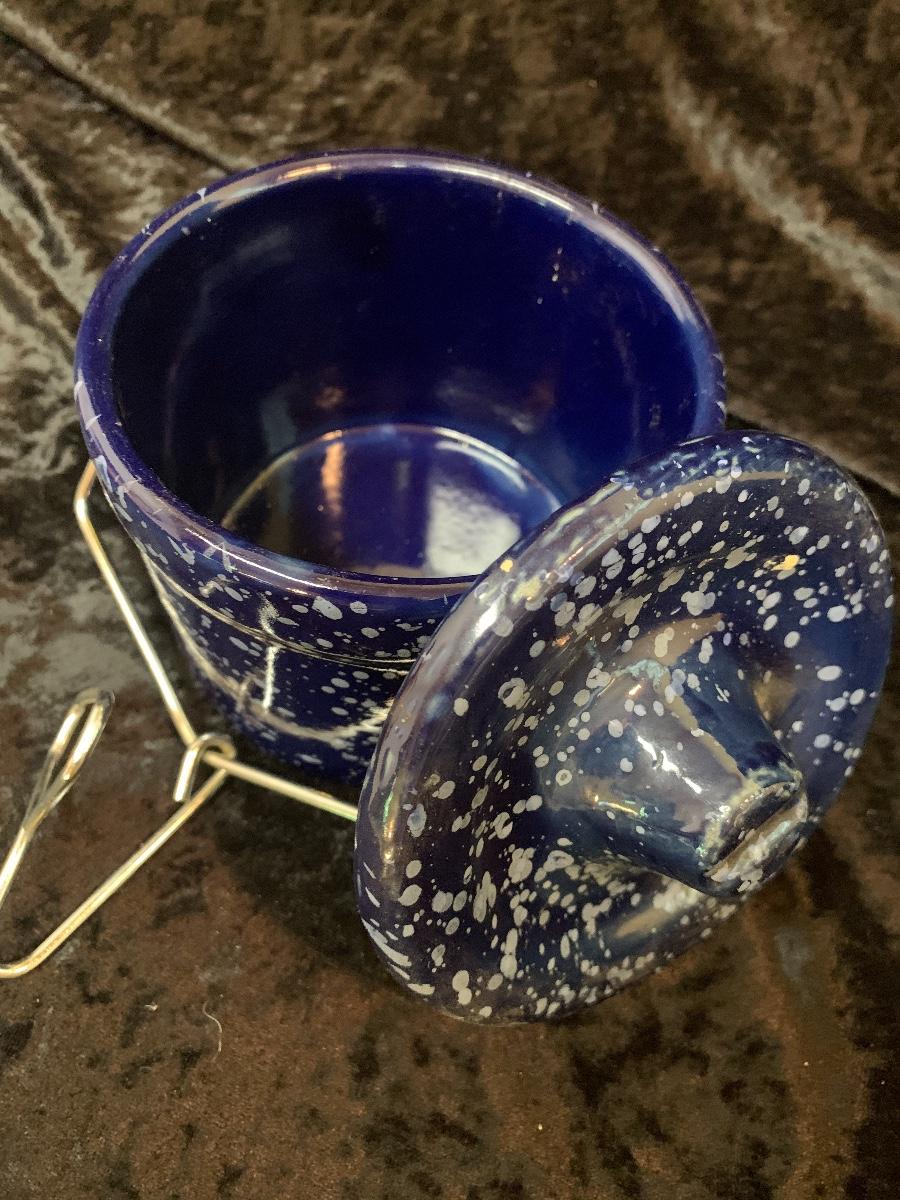 A total of 5 unique pieces: ceramic pitcher, blue lidded crock, blue bowl, teal dish and an open crock.