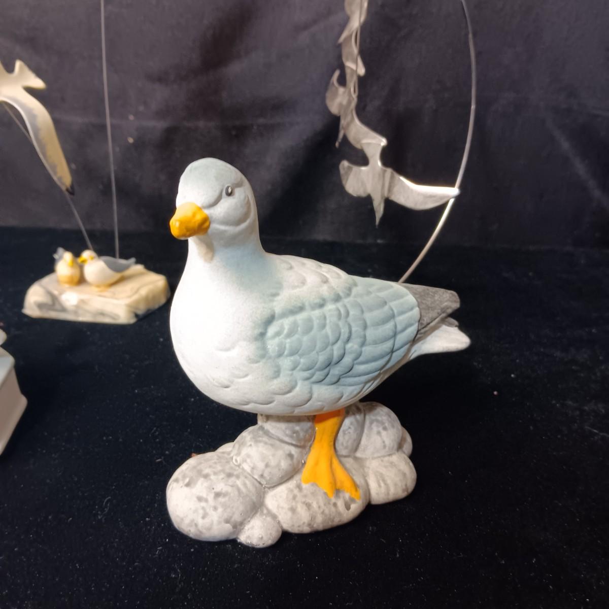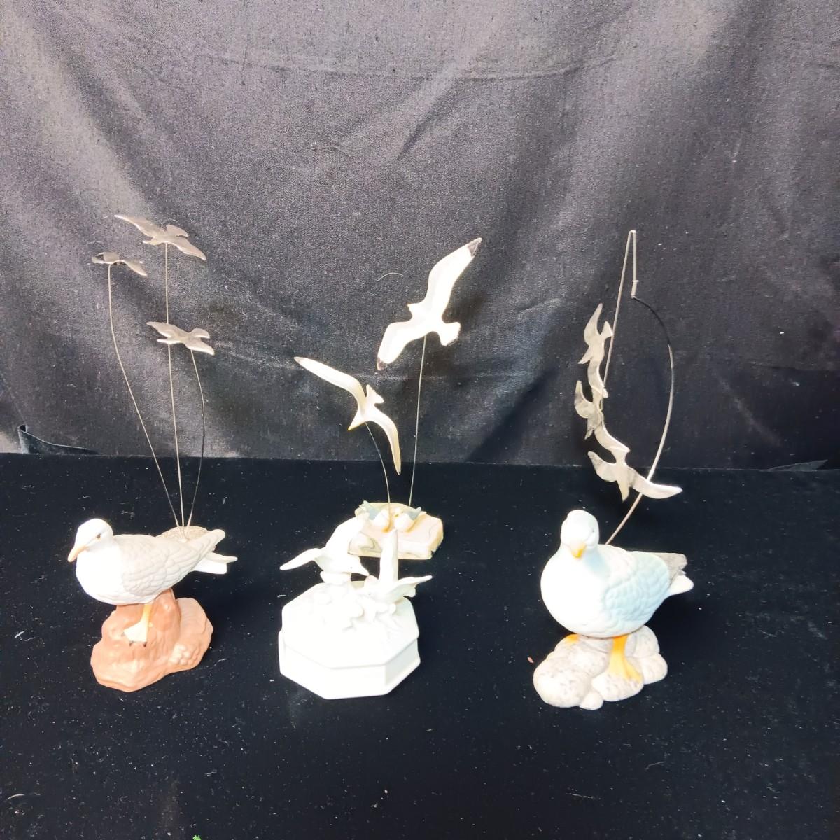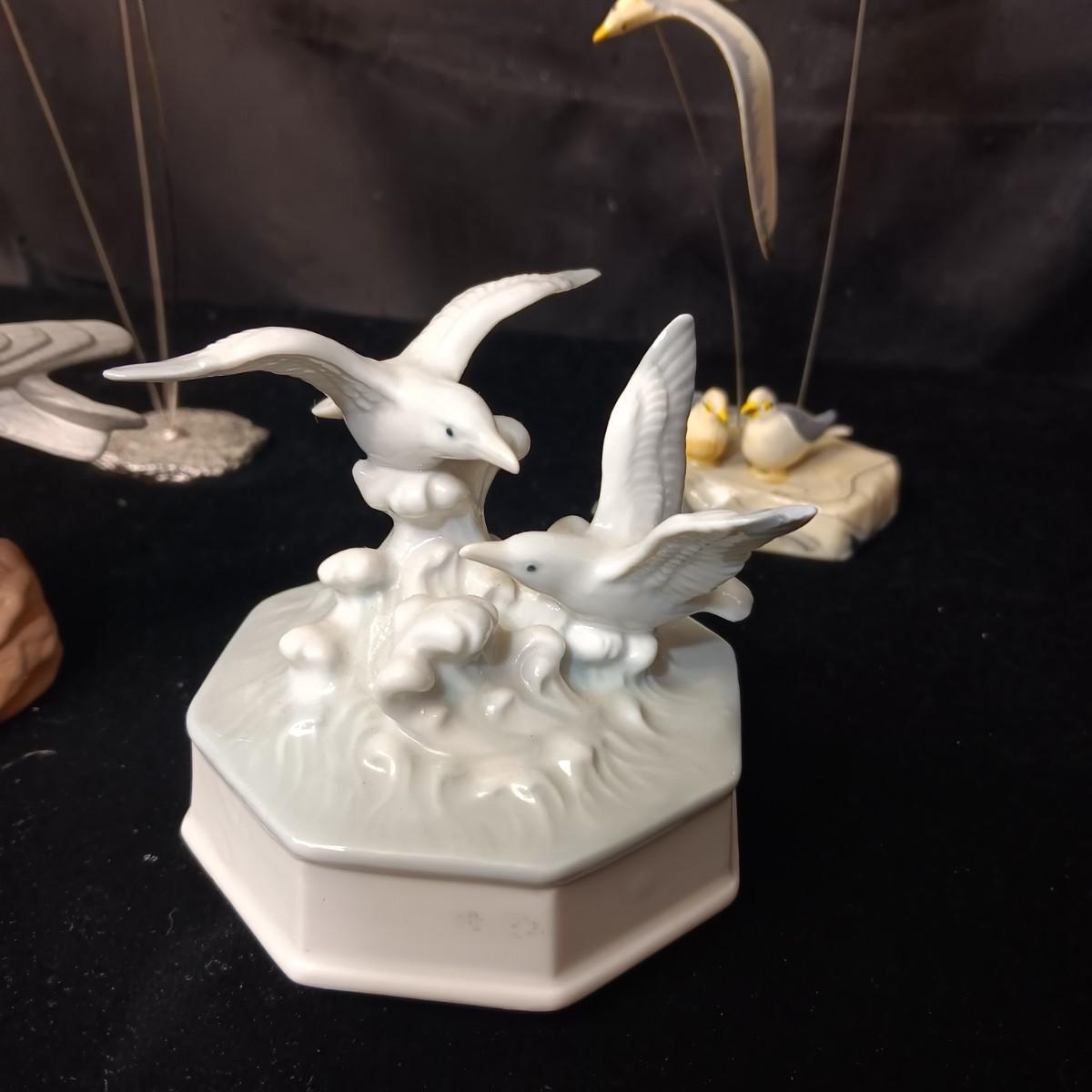 A SEAGULL MUSIC BOX, CERAMIC AND FLYING SEAGULLS TOO