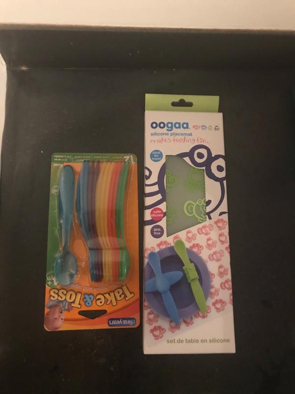 A Set Of 2 Baby’s spoons and & Plate Matt Set