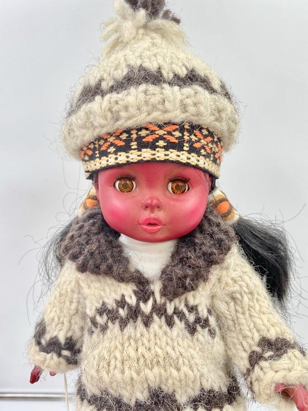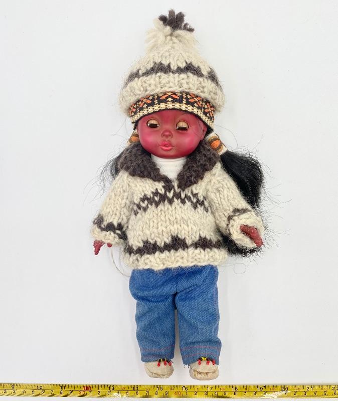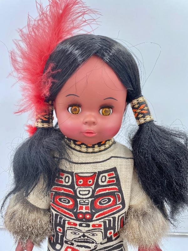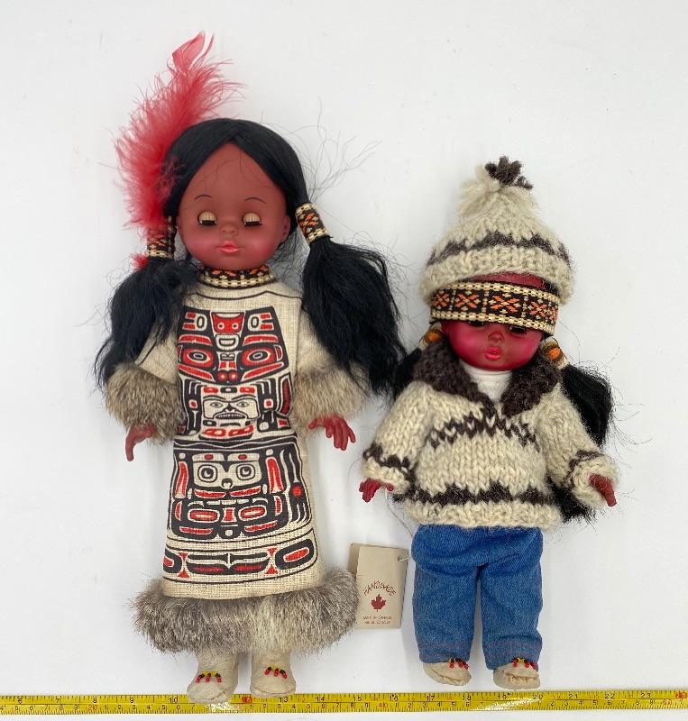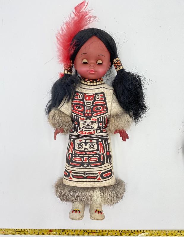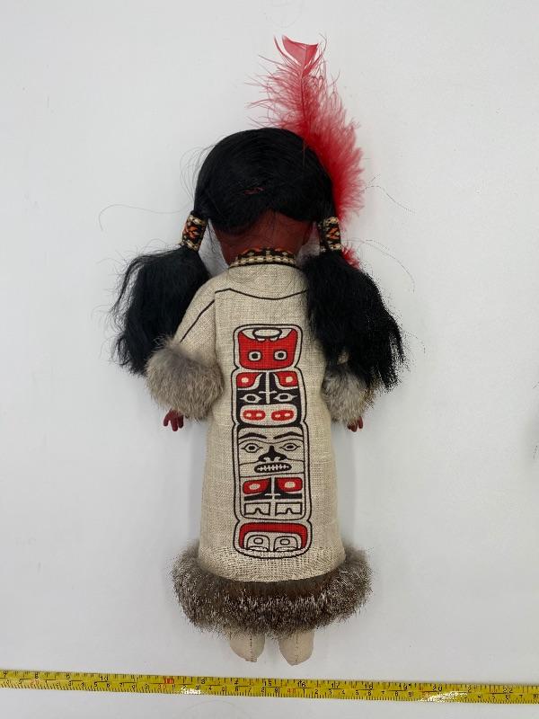 2 beautiful Native American dolls with REAL fur The larger girl is 14 1/2 inches tall while the smaller girl is 11 1/2