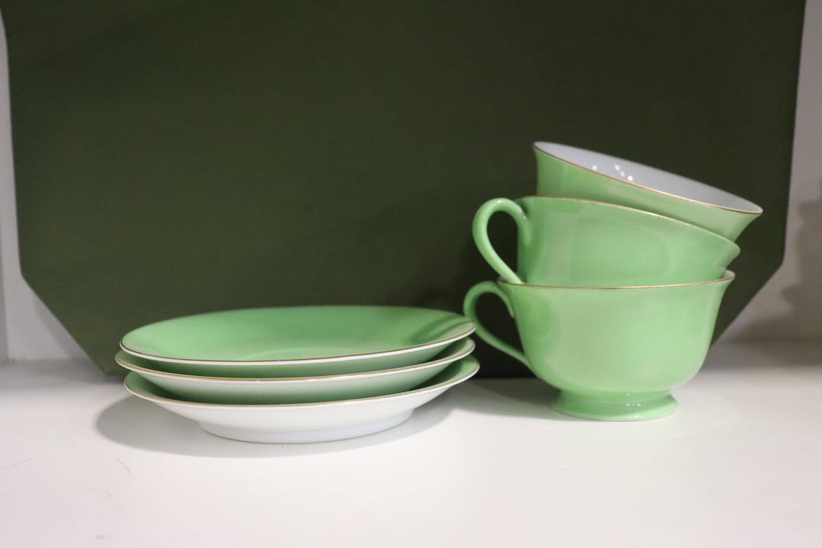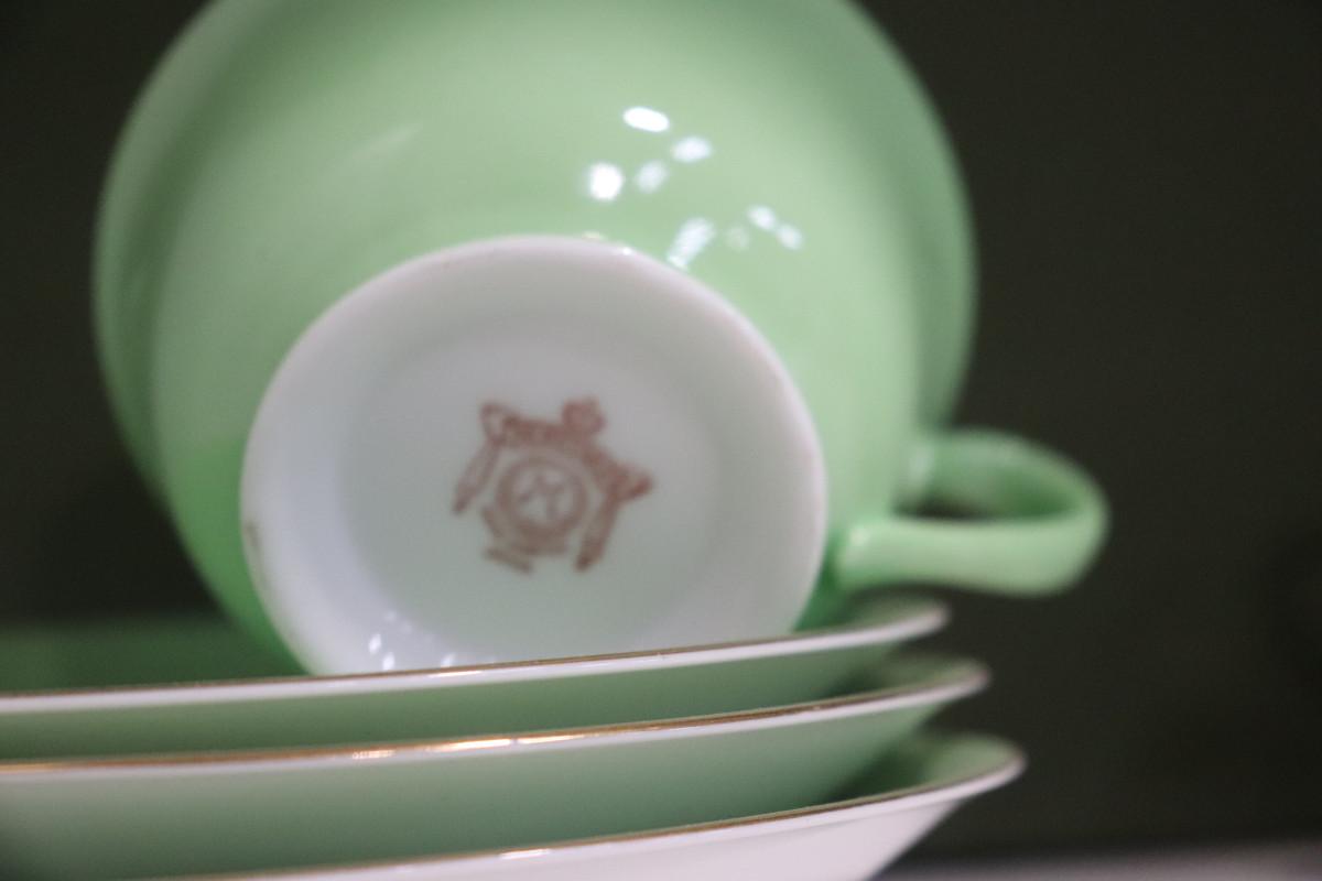 A set of Vintage Japanese hand-painted Noritake porcelain green teacup/coffee cup and saucer
