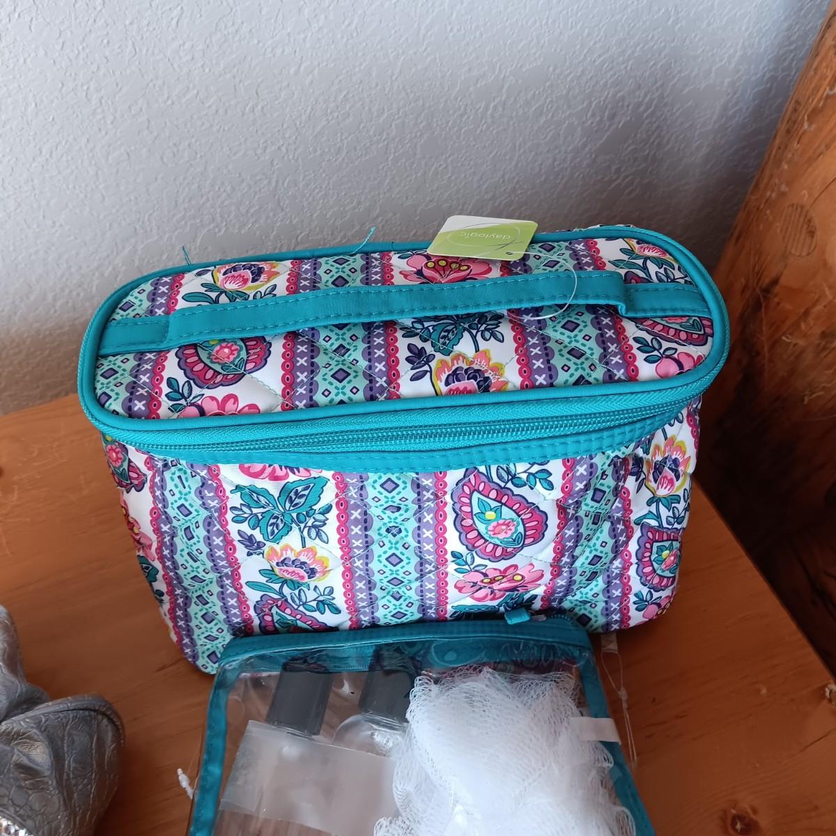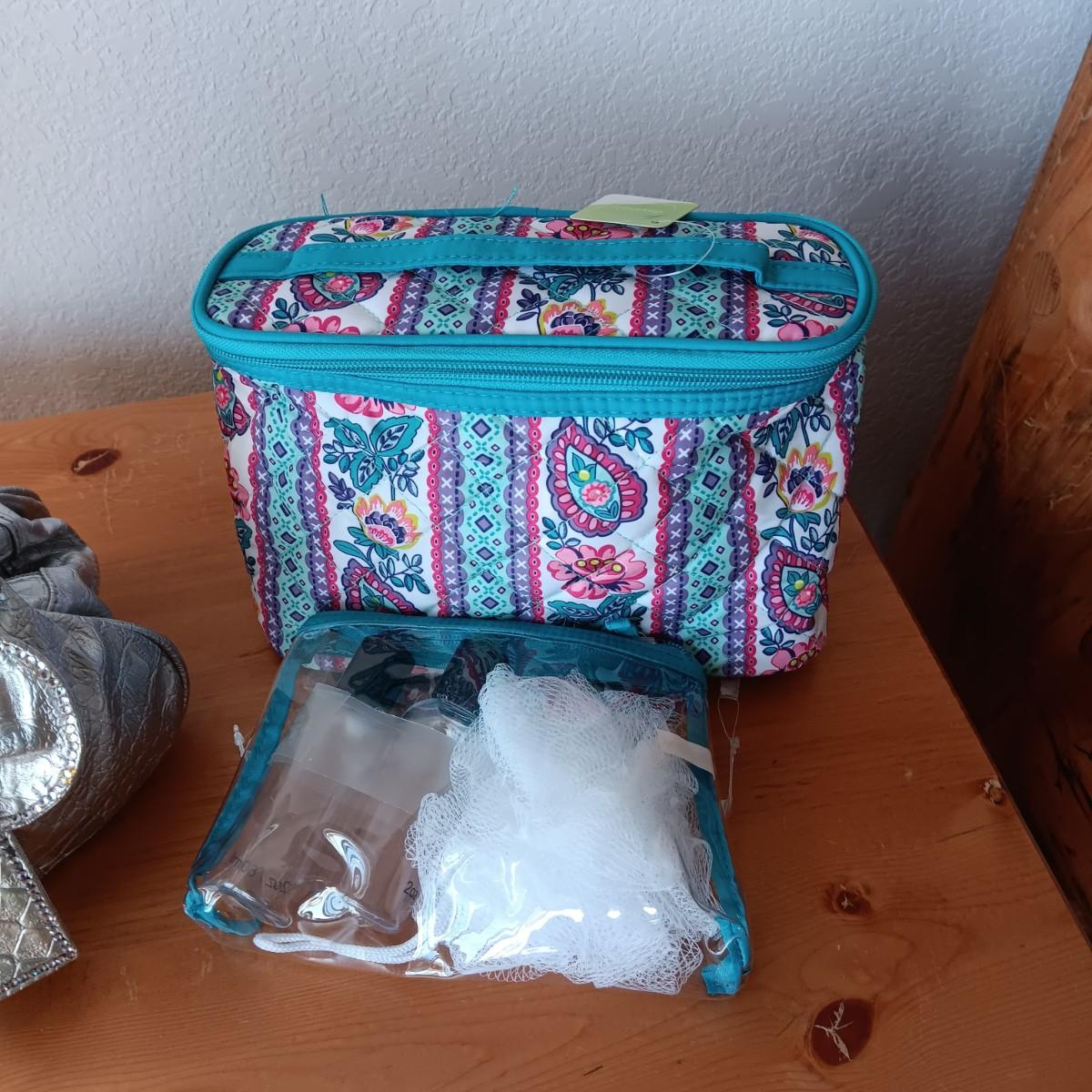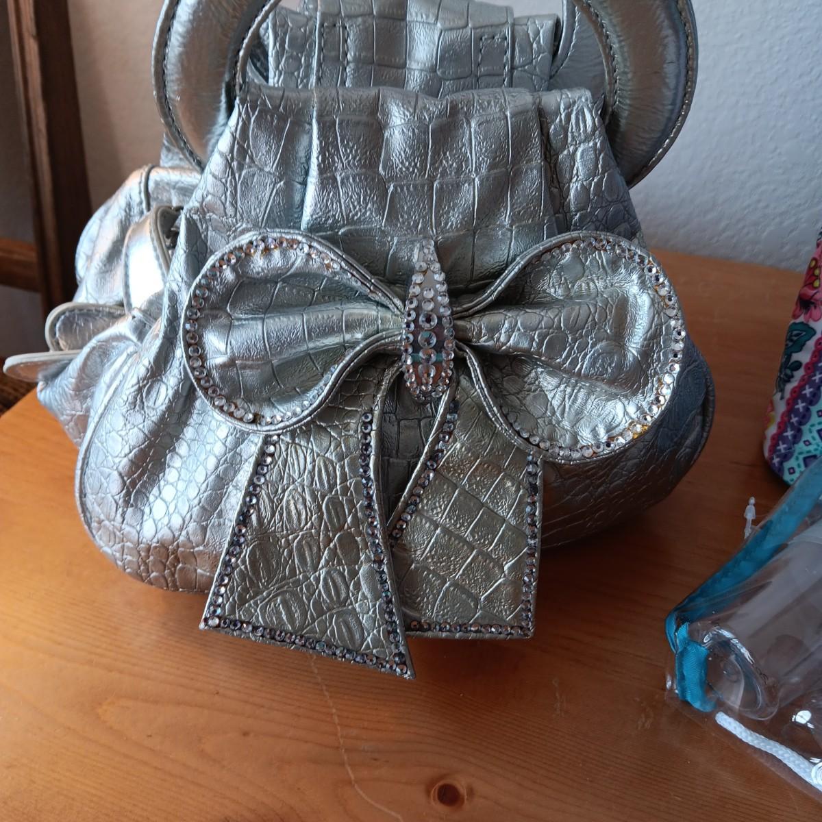 A SWEET SILVER PURSE, CLOTH WALLET AND MAKEUP BAG