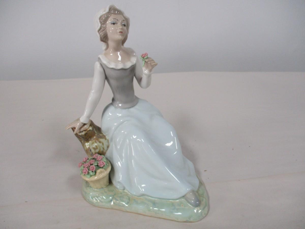 Vintage Tengra Porcelain Figurine of Maiden and Flower Basket