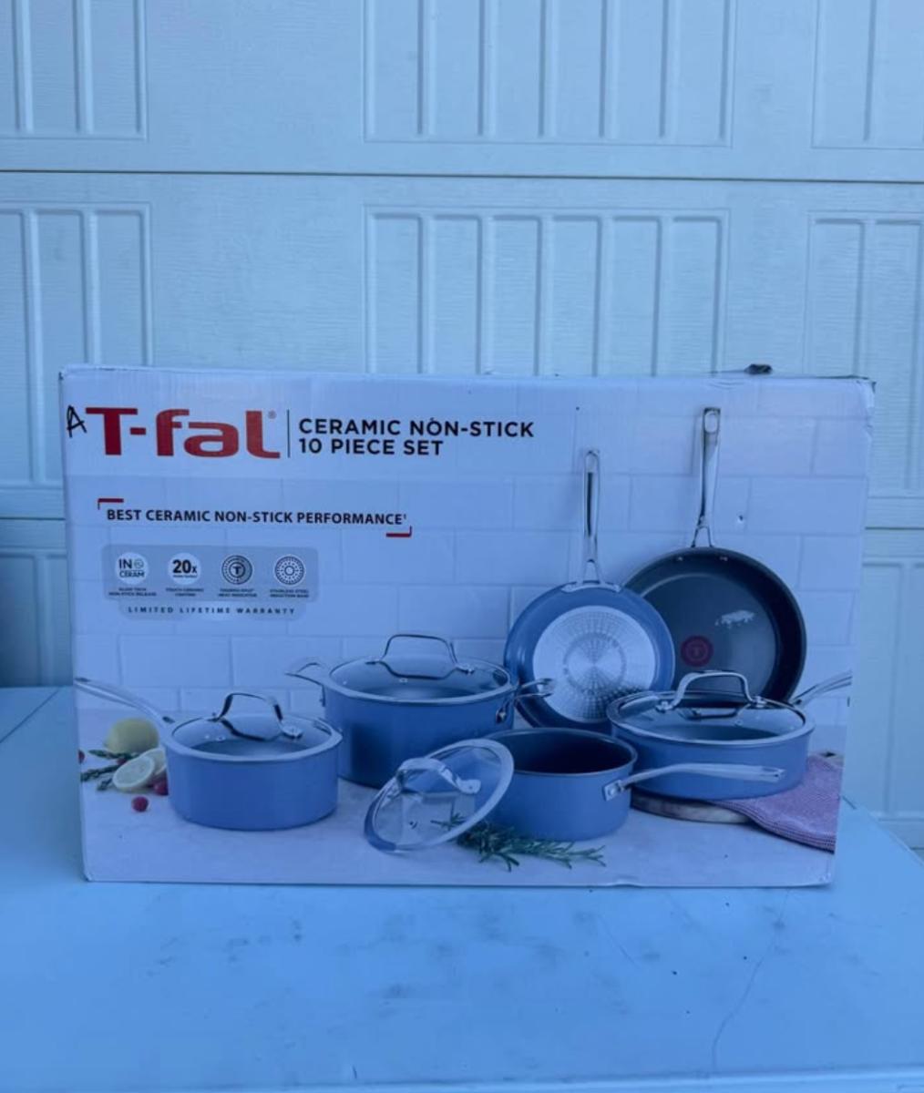 A - T-fal Forged Non-Stick Set 10 Piece Cookware in Blue