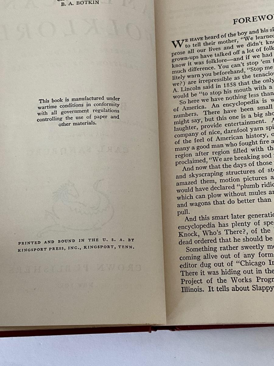 A Treasury of American Folklore, edited by BA Boykin (1944) as pictured