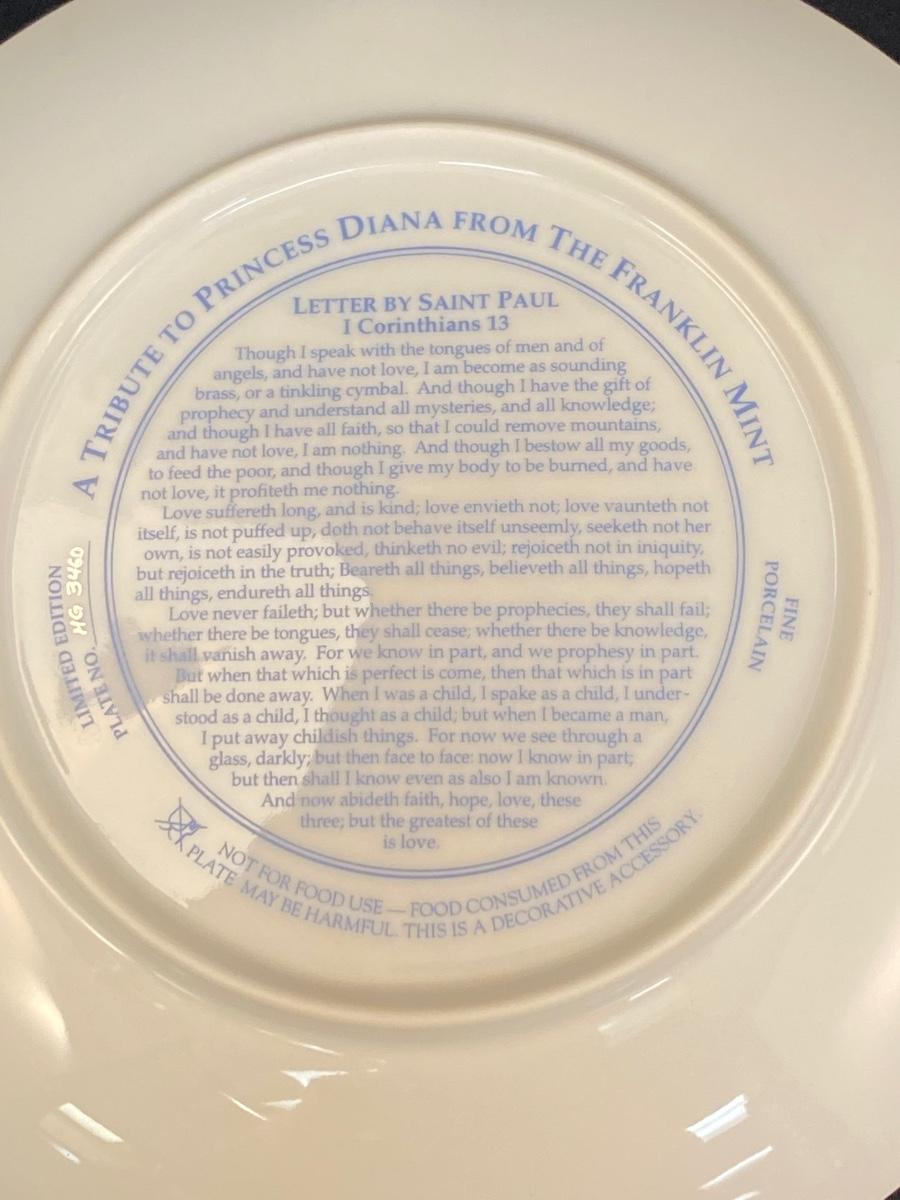 A Tribute to Princess Diana from The Franklin Mint Collector Plate. In very good condition.