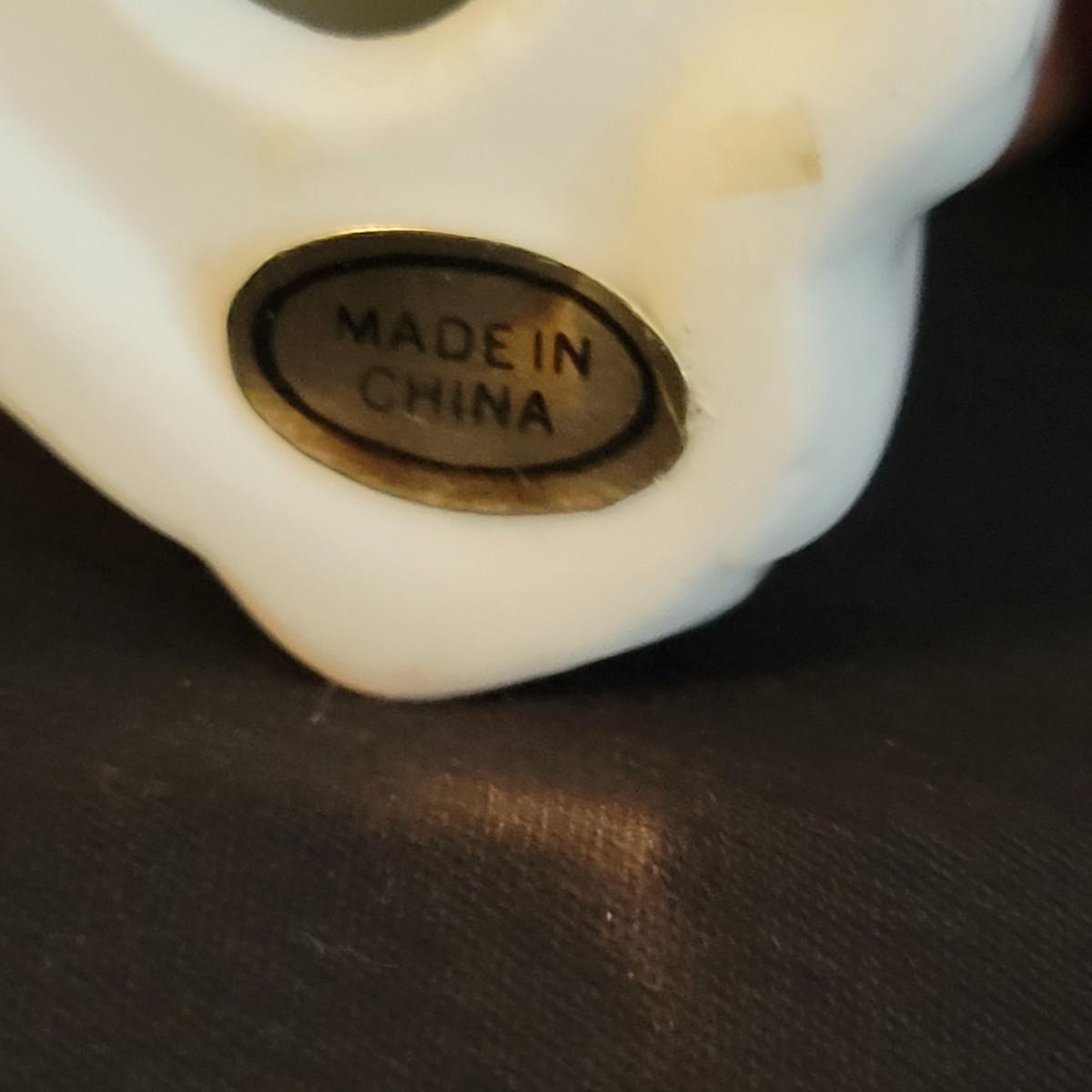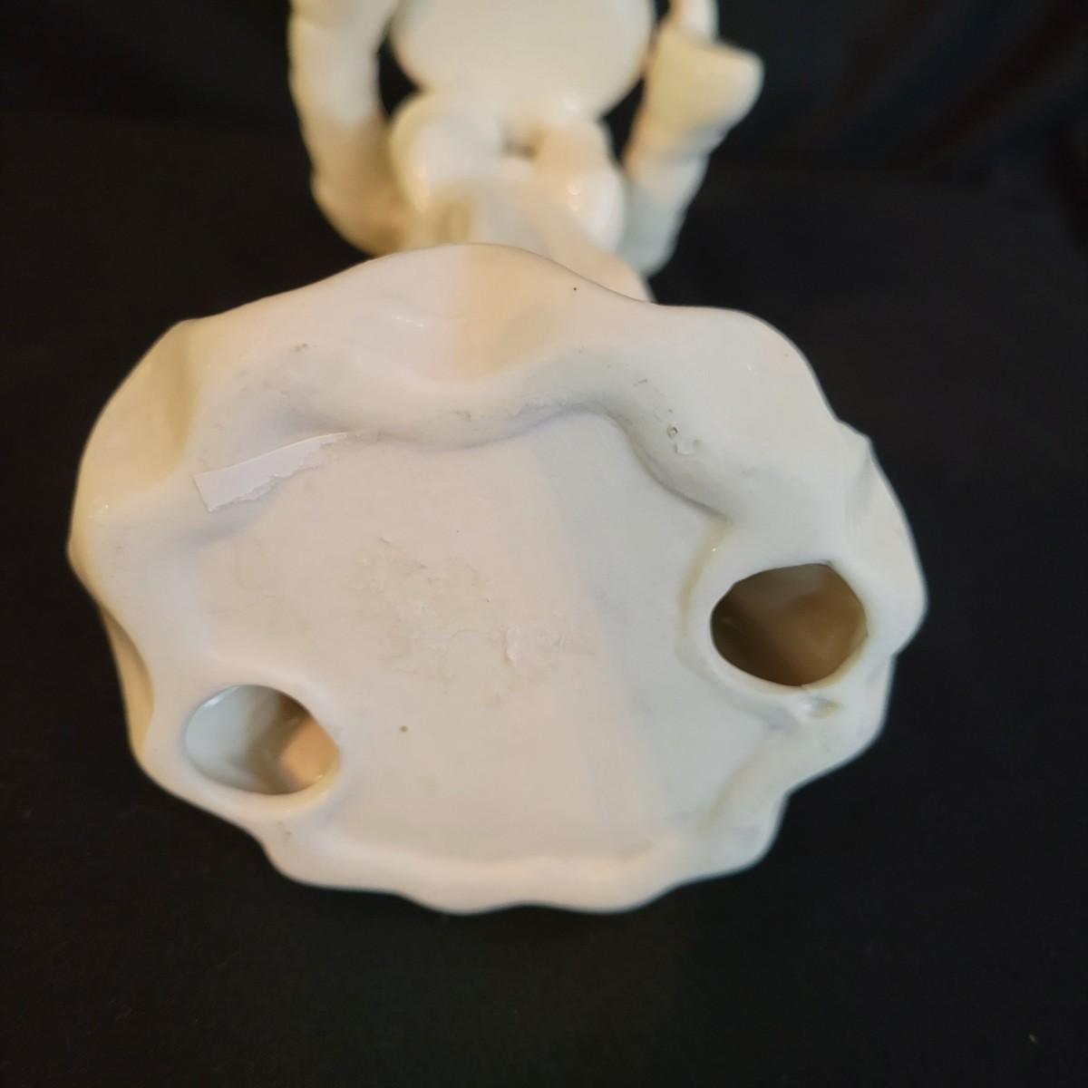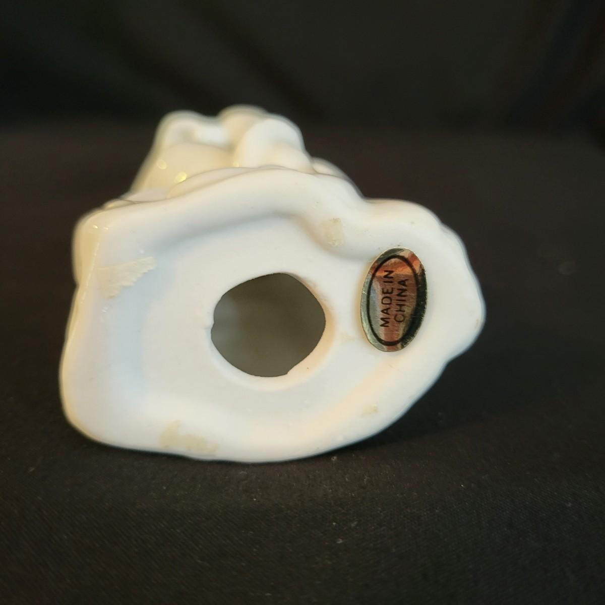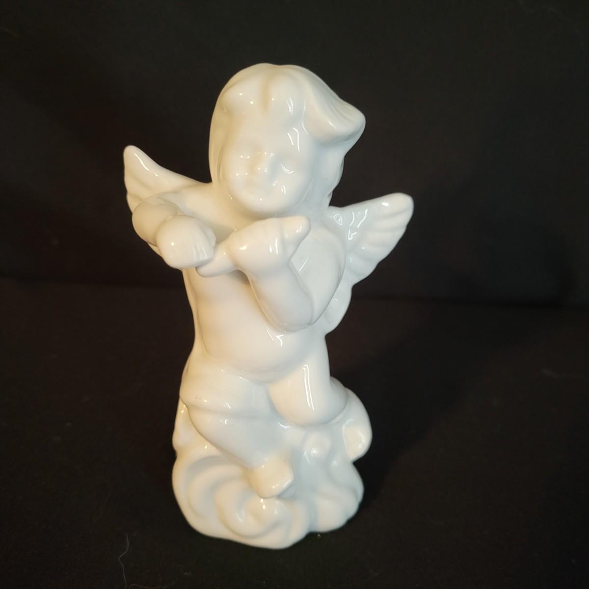 A trio of ceramic angels. One could be used as a tree topper; it has a fabric dress and a ceramic head. This item measures approximately 8"D x 11.5"H. The other two pieces are ceramic and one has gold accents. Shipping available