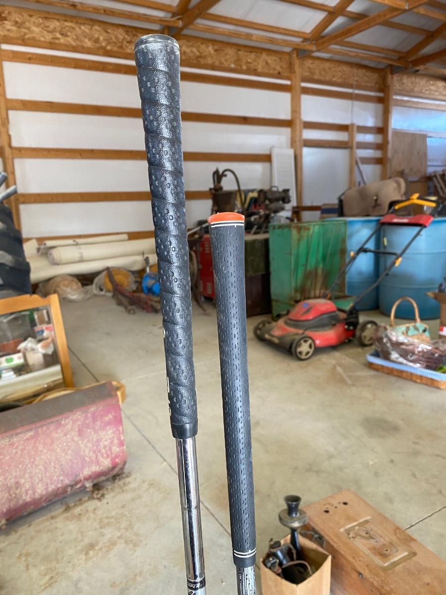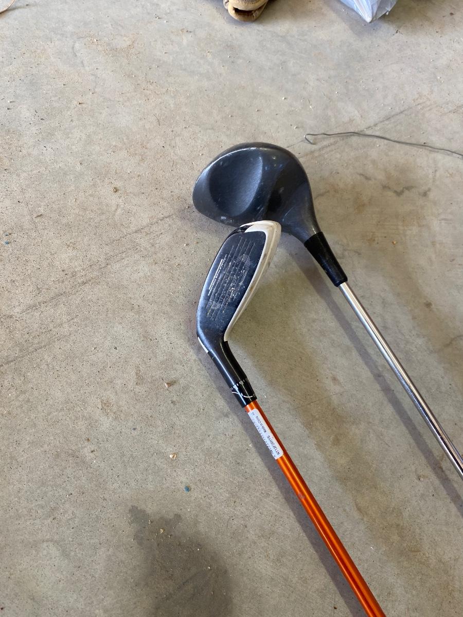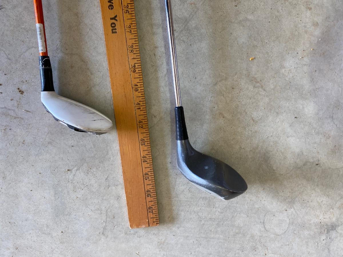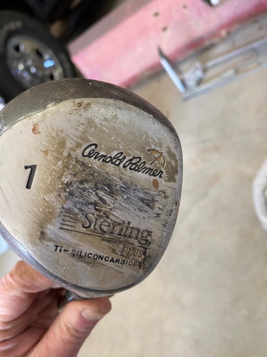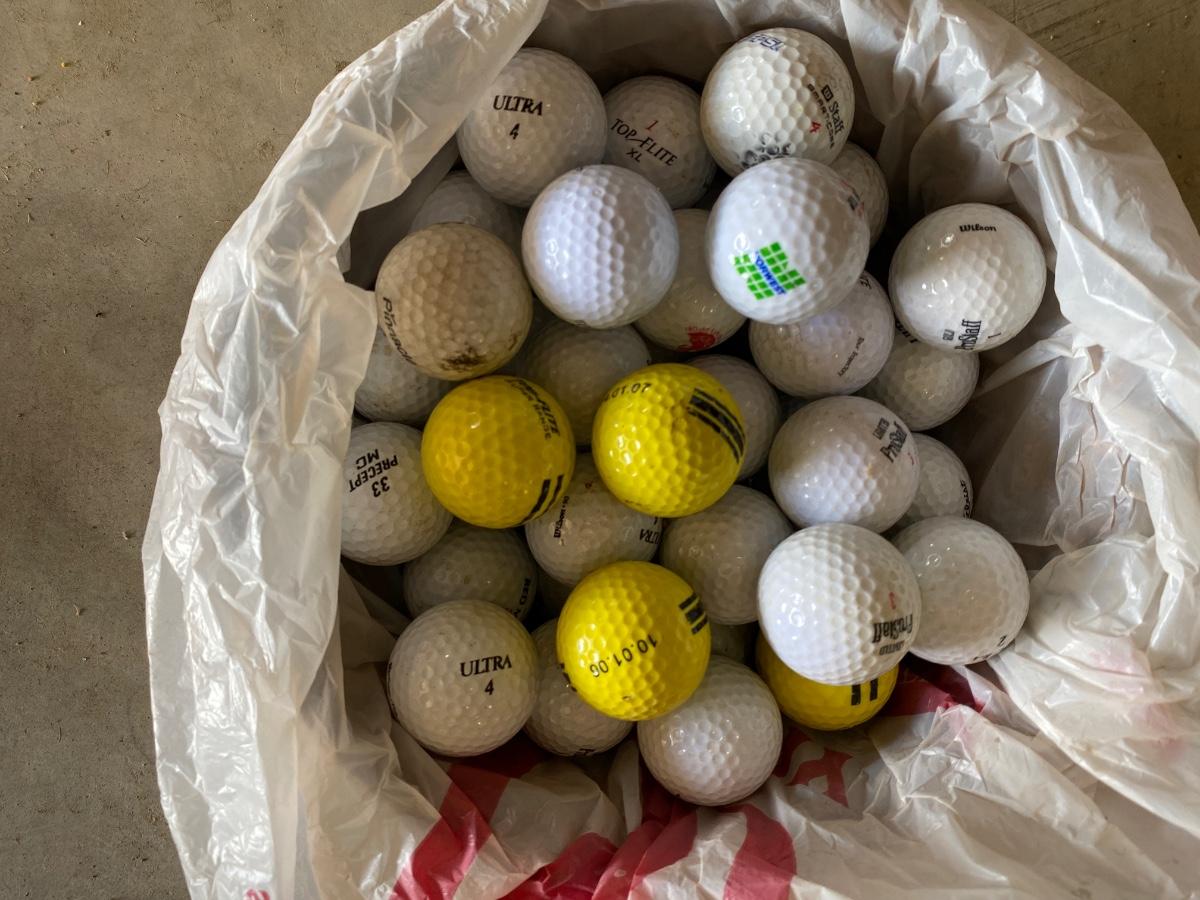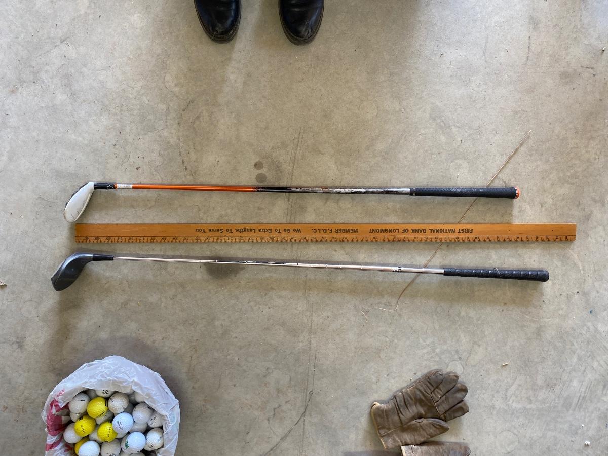 PING AND ARNOLD PALMER DRIVERS, A PIECE OF GREEN TO TEE OFF WITH A BASKET OF GOLF BALLS