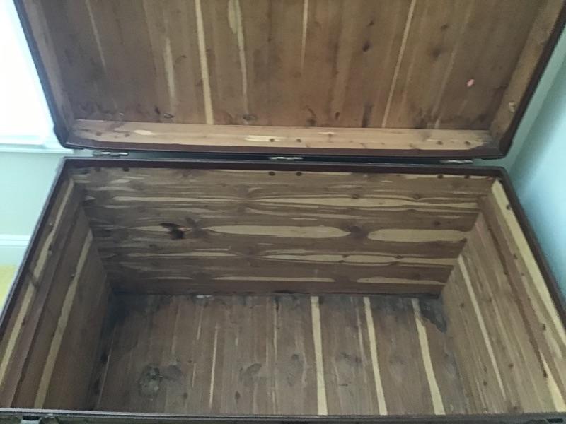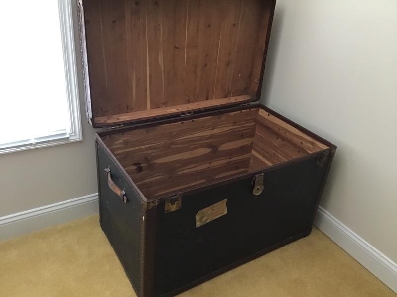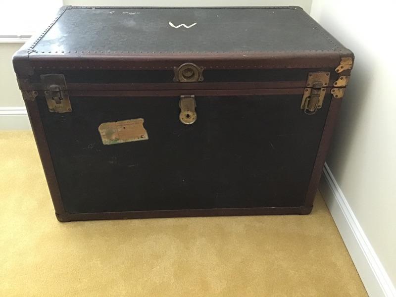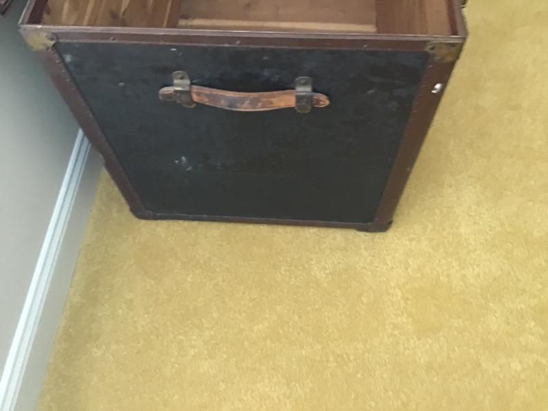 A really neat piece. Leather handles. Left locking clamp needs a little TLC. Measures 40Wx26Hx23D.
