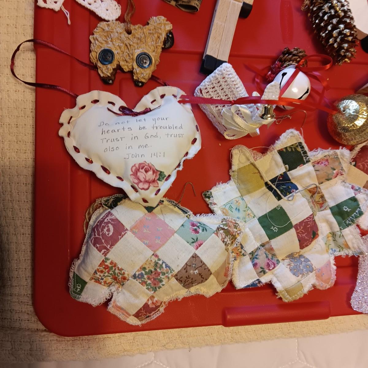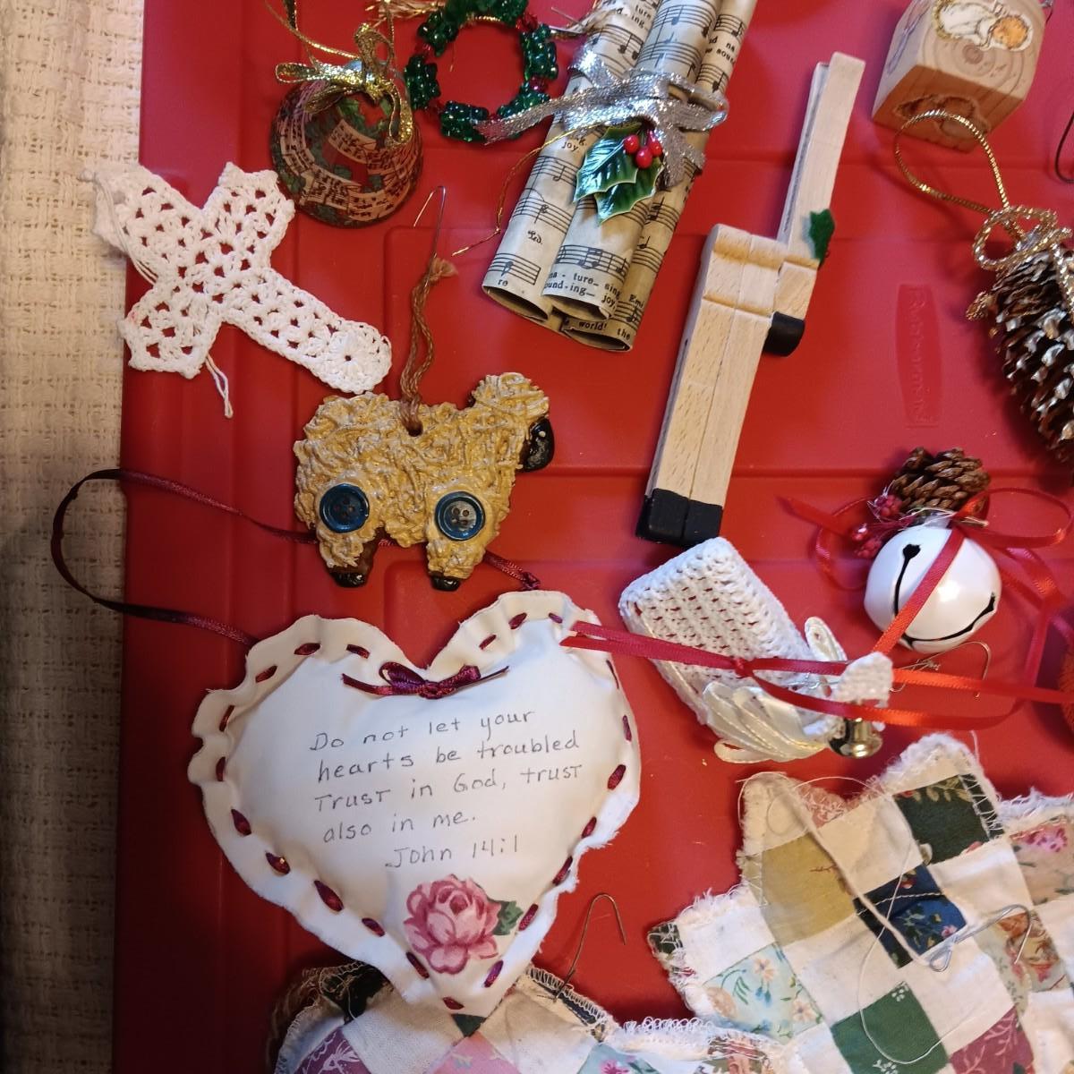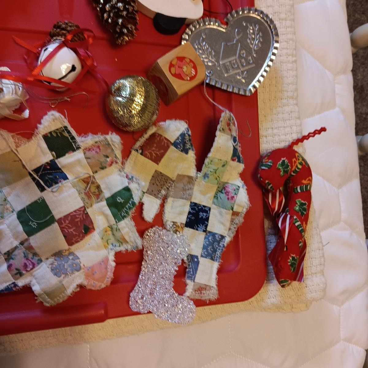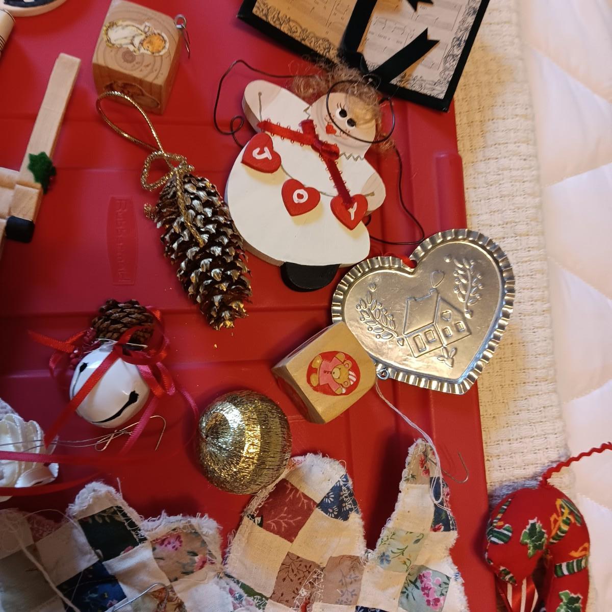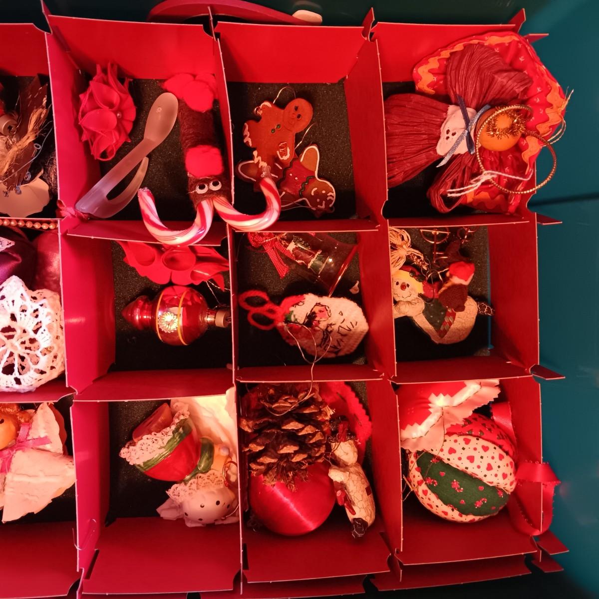 A VARIETY OF CHRISTMAS ORNAMENTS WITH AN ORGANIZING STORAGE TOTE