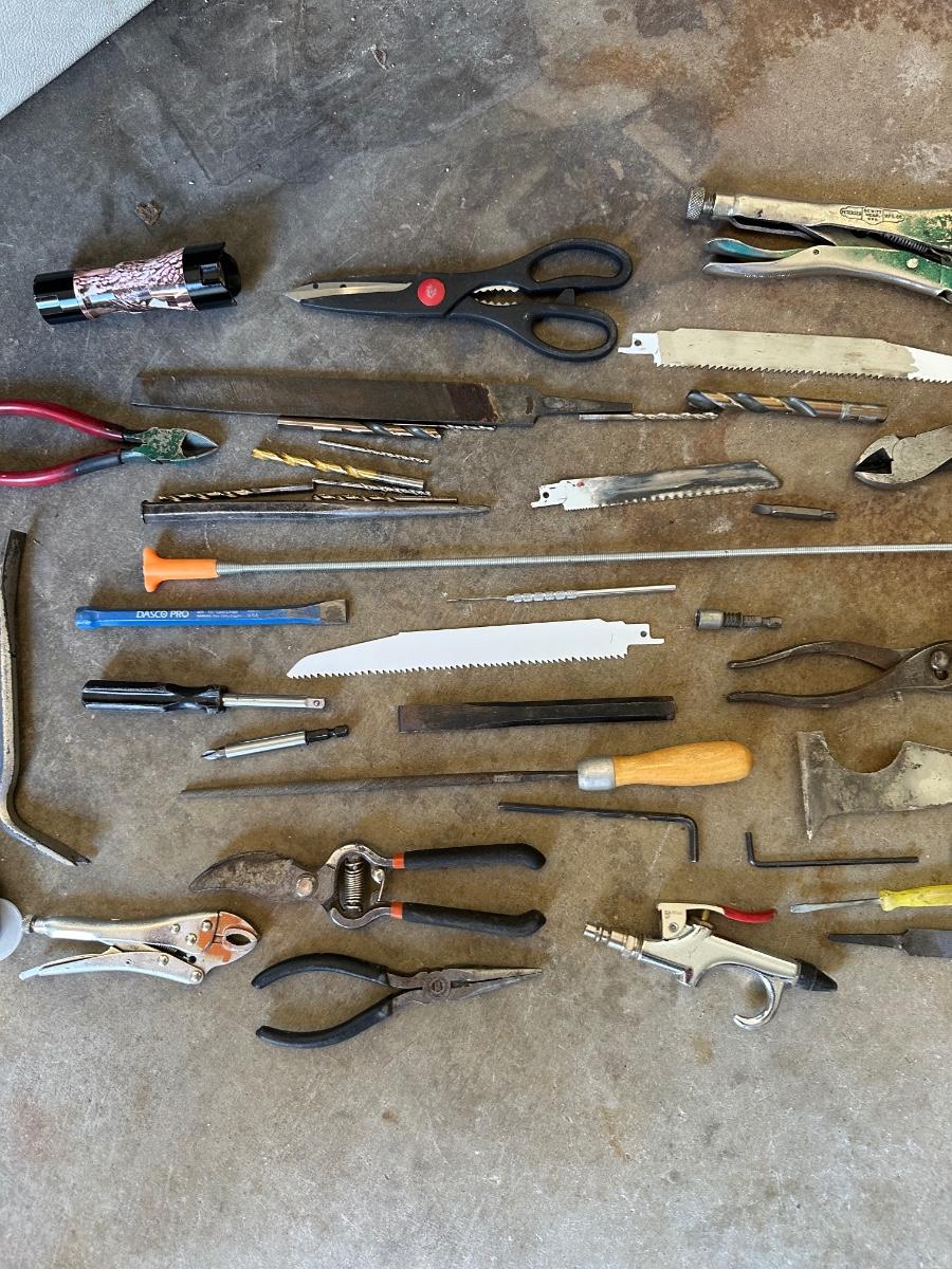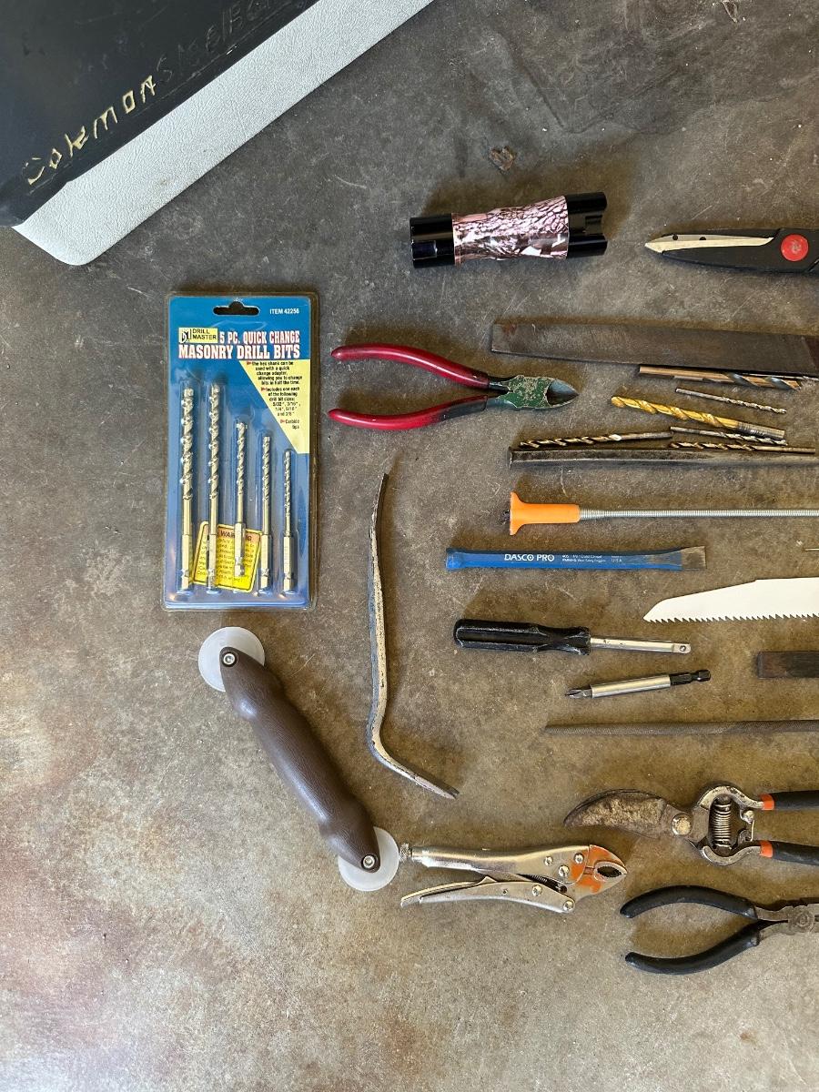 A VARIETY OF HAND TOOLS & DRILL BITS