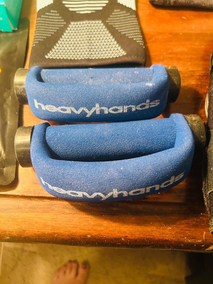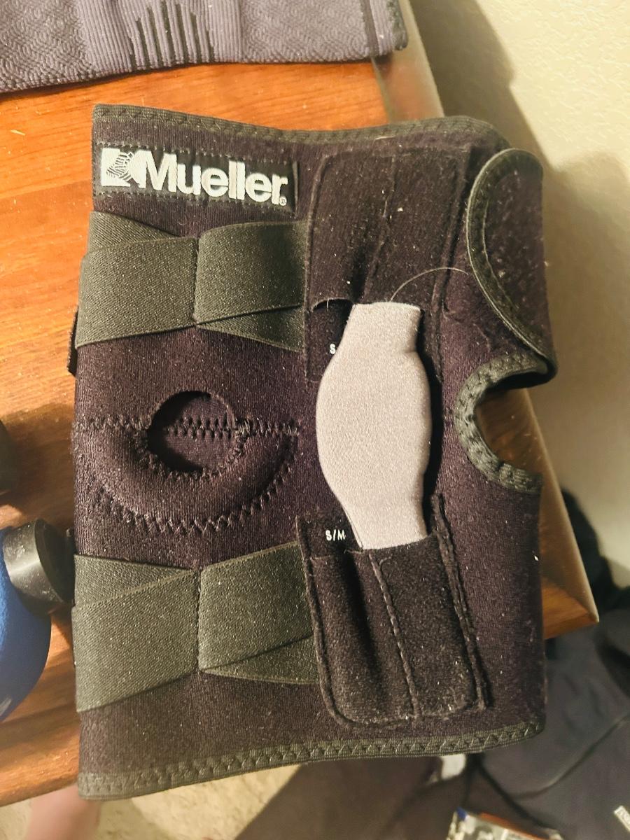 A VARIETY OF KNEE BRACES AND HAND WEIGHTS