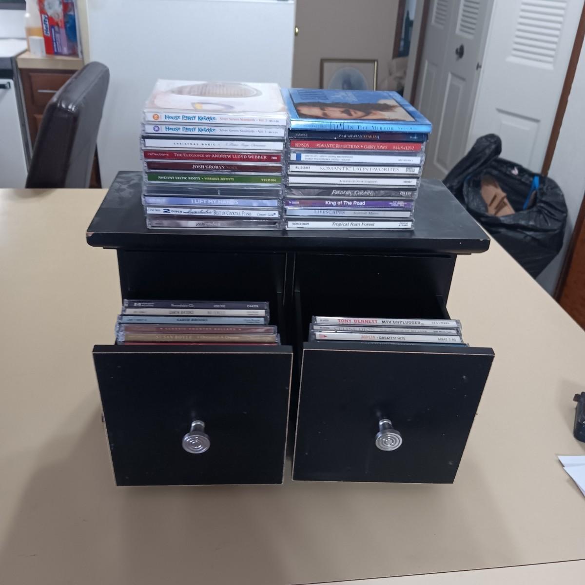 A VARIETY OF MUSIC ON DVD'S WITH A 2 DRAWER ORGANIZER