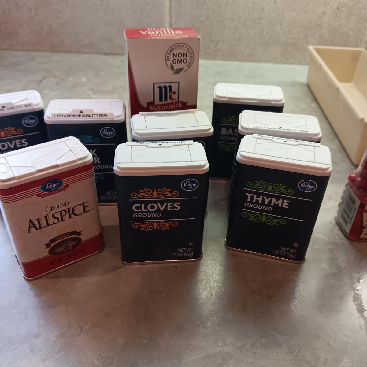 A VARIETY OF SPICES AND A SET OF SHAKERS
