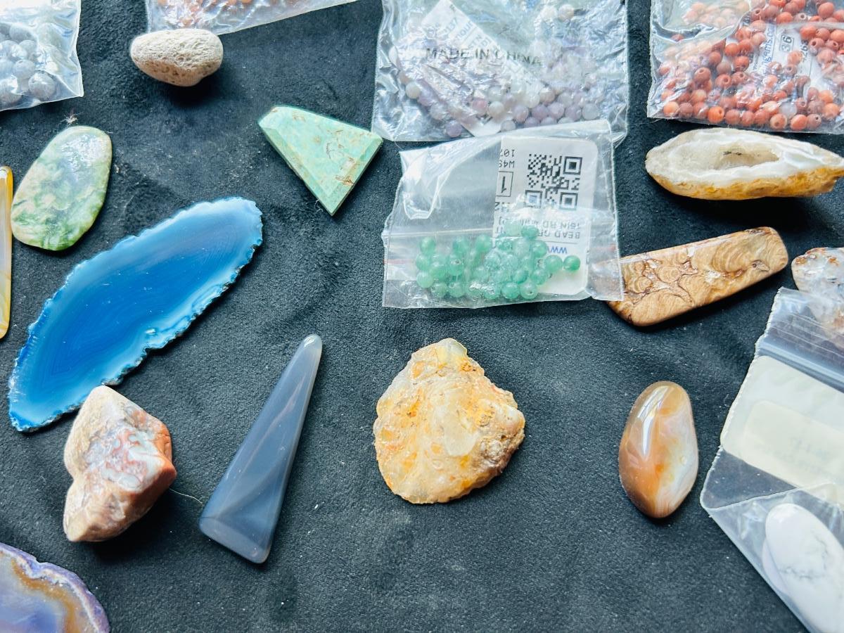 A VARIETY OF STONE BEADS AND OTHERS READY FOR CRAFTING