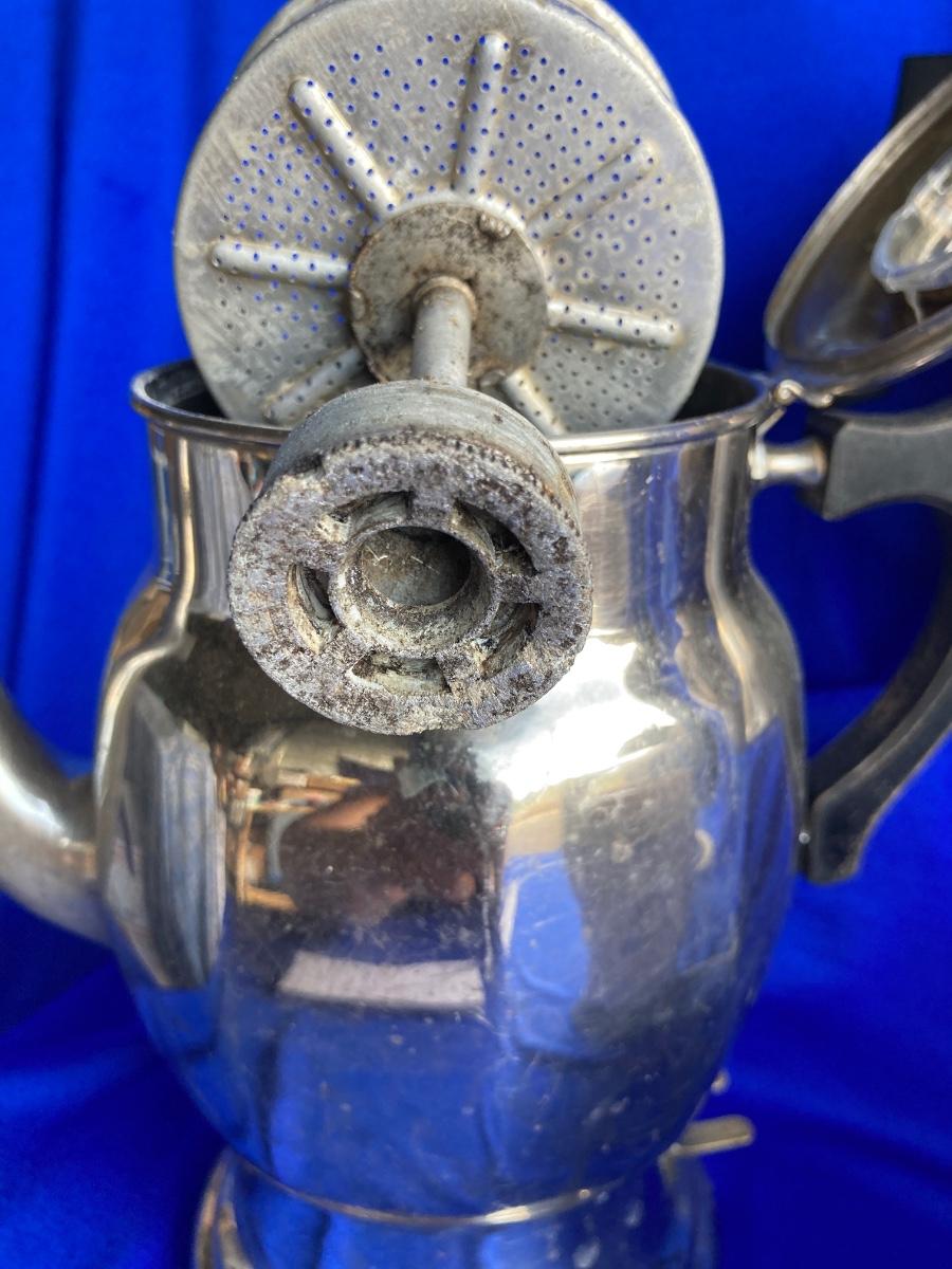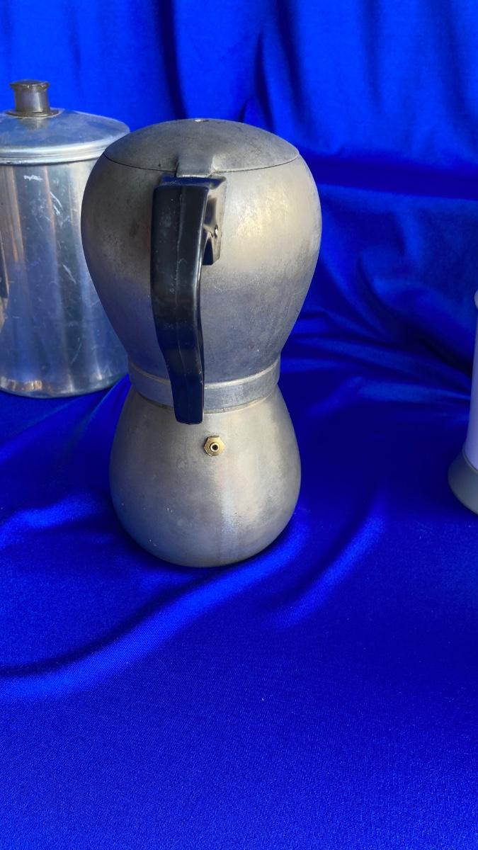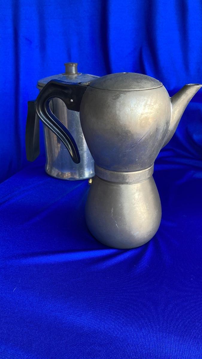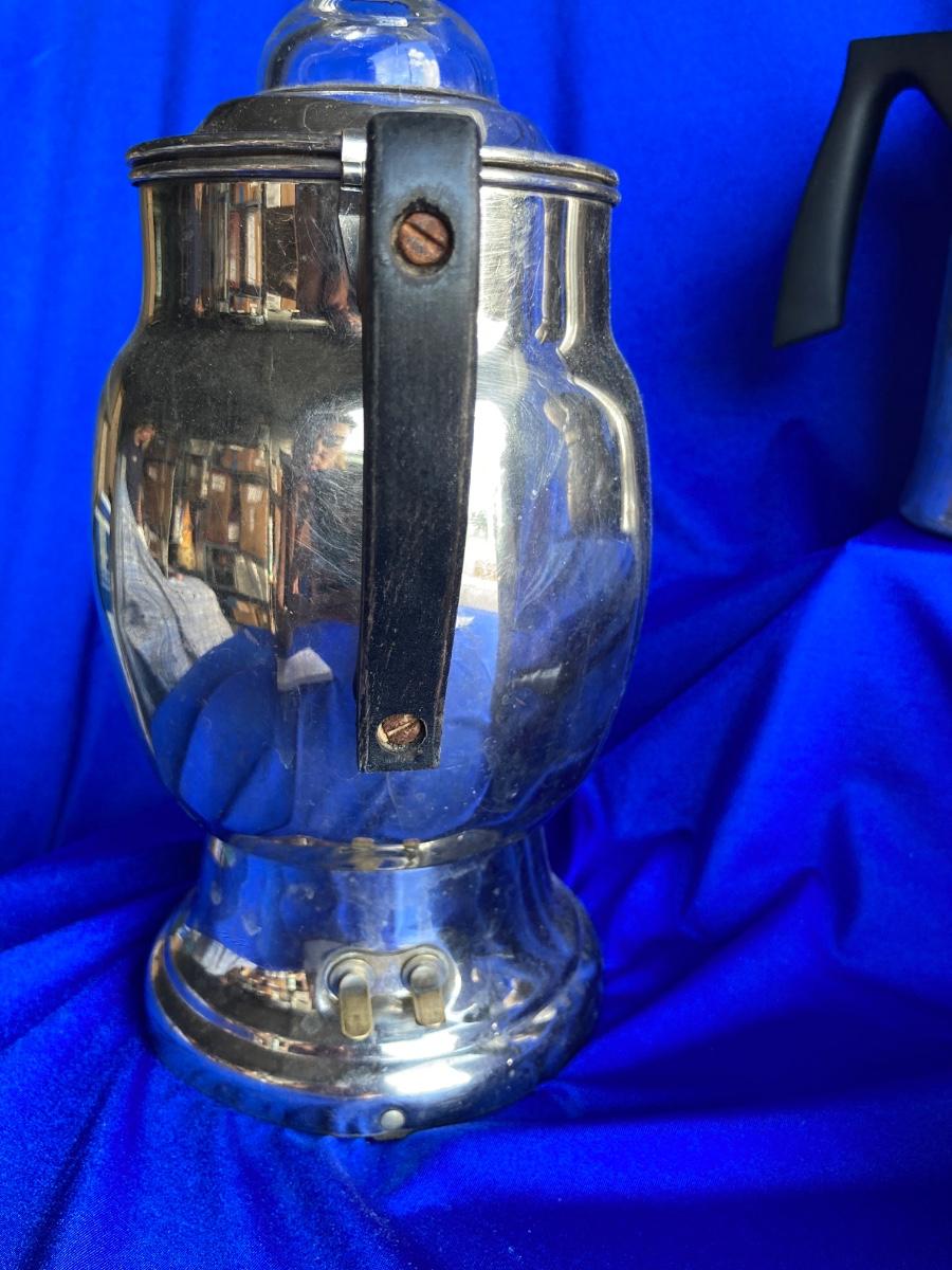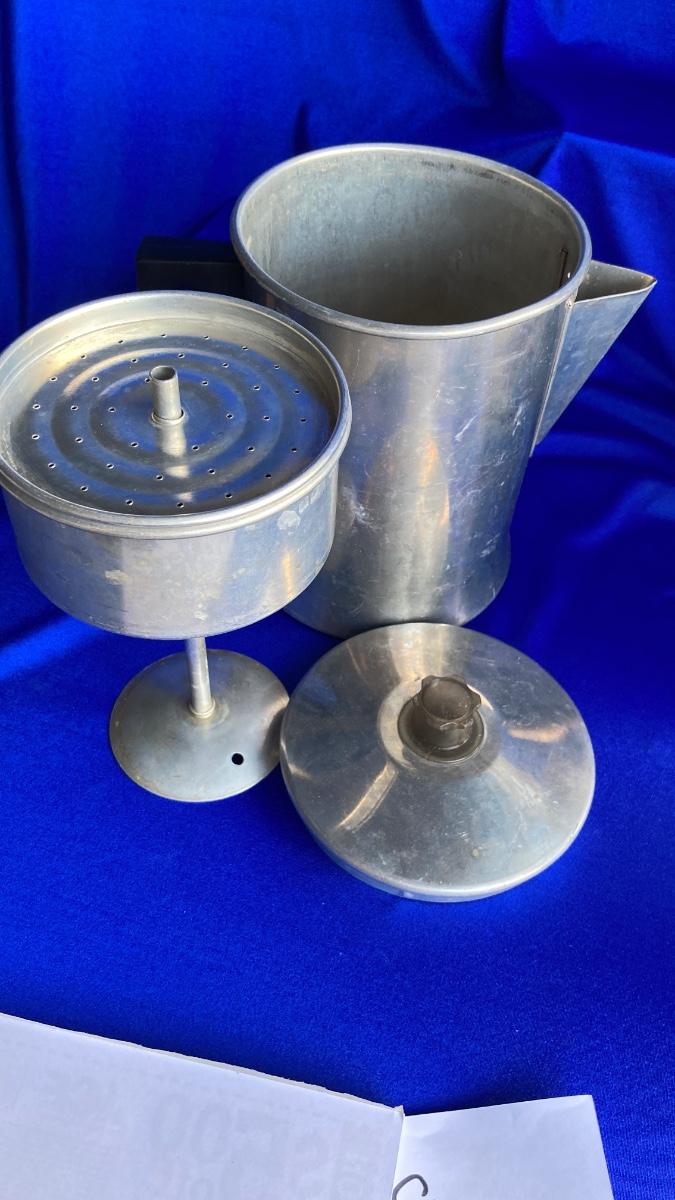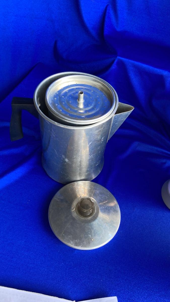 A VARIETY OF VINTAGE COFFEE POTS AND A COFFEE GRINDER TO TRY THEM OUT WITH