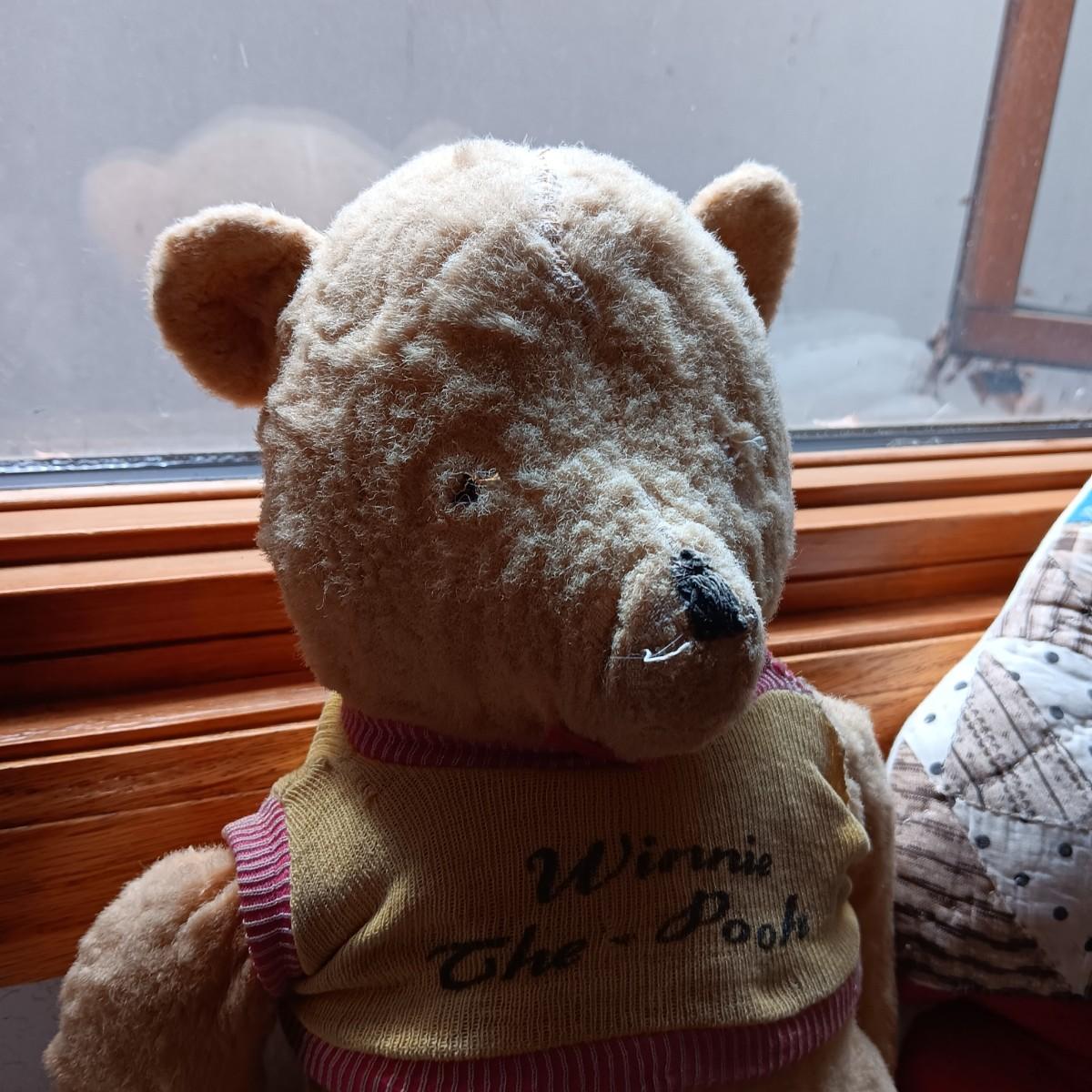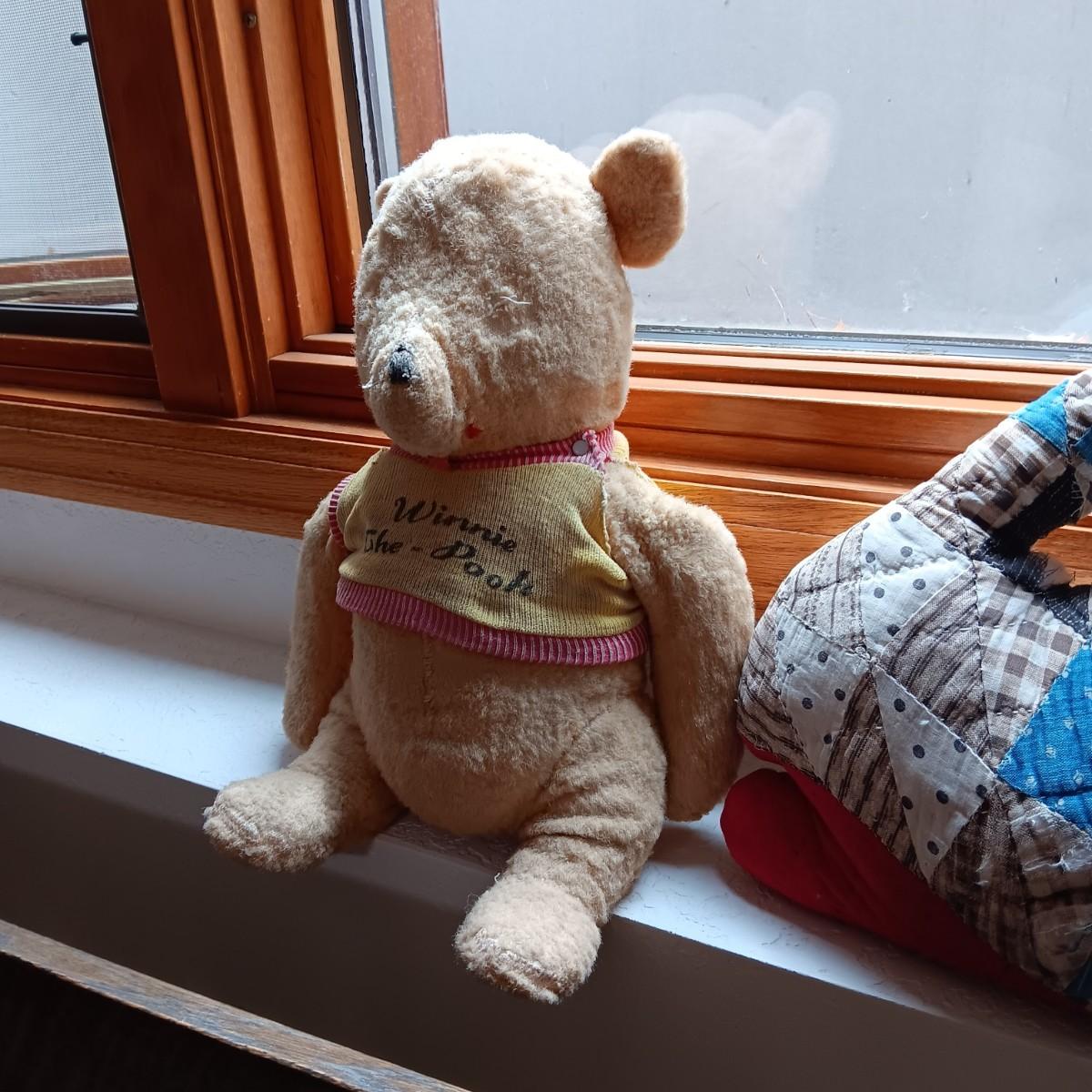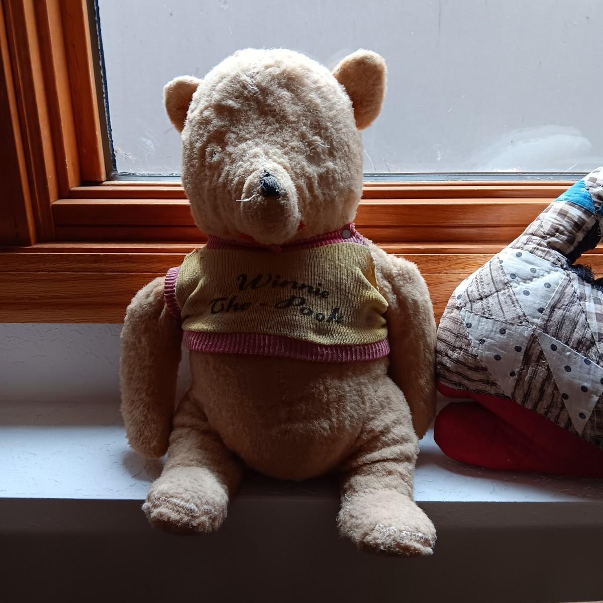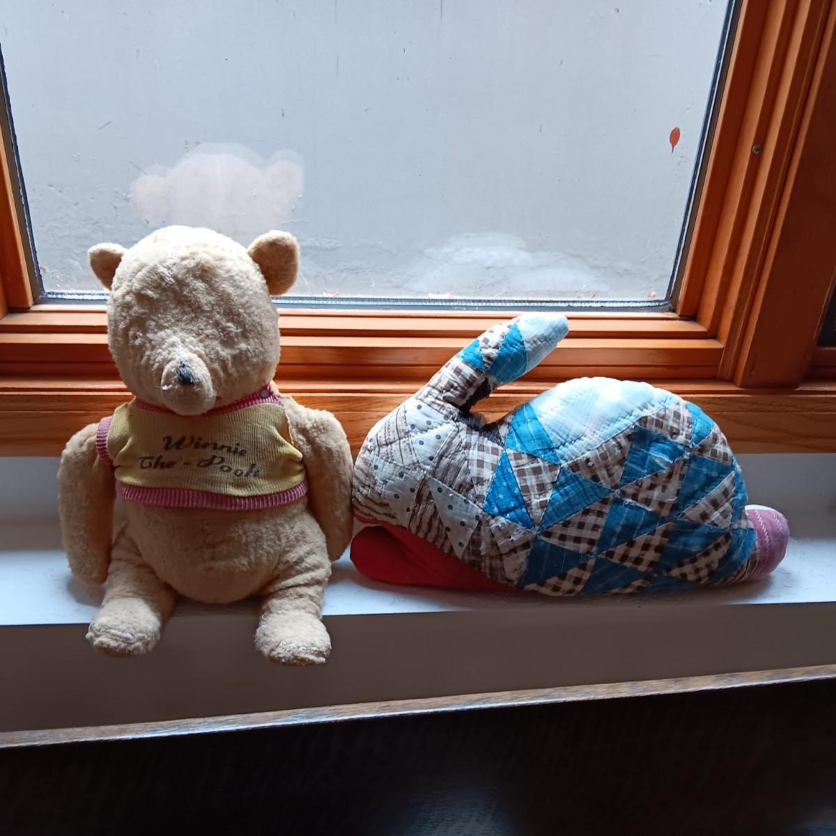 A VERY OLD AND MUCH LOVED WINNIE THE POOH PLUS A PATCHWORK RABBIT