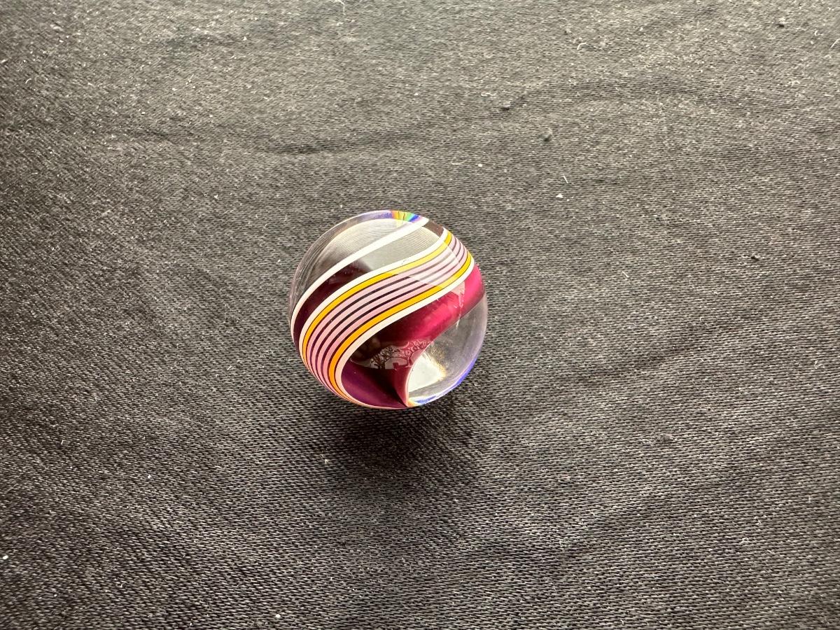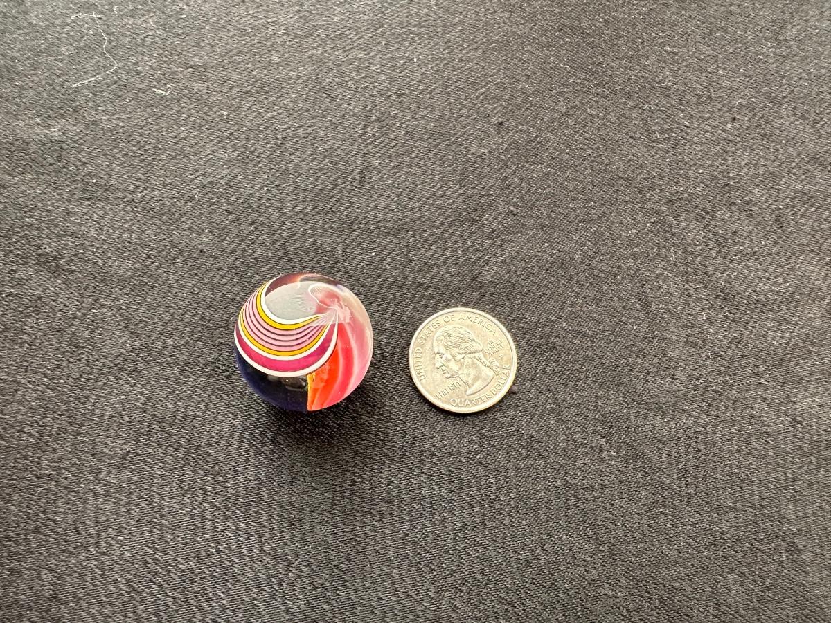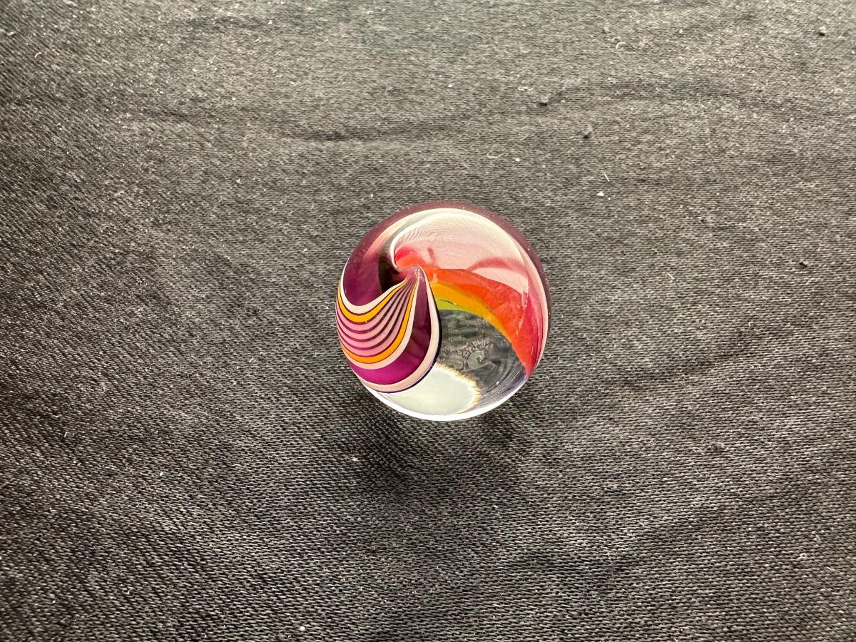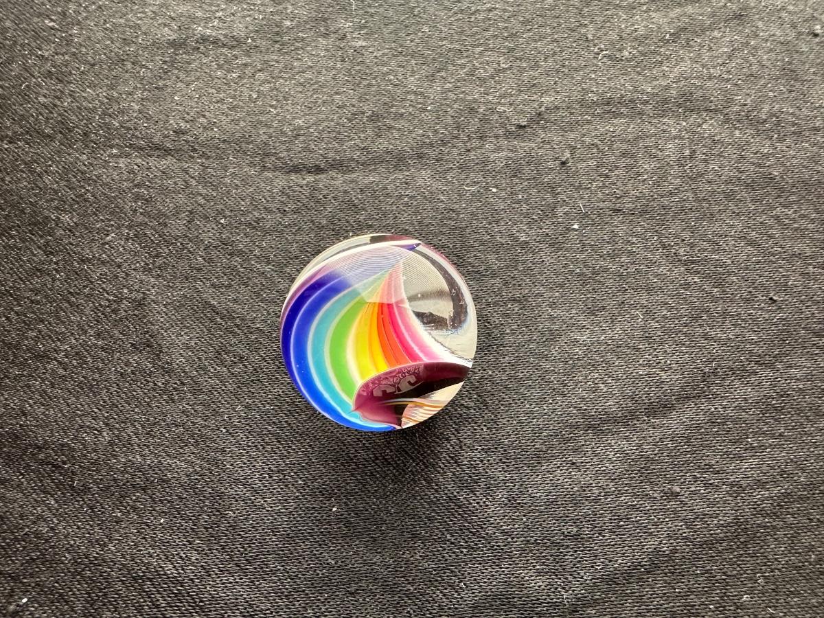 A VIBRANT MULTICOLORED MARBLE WITH A SWIRLING RAINBOW DESIGN
