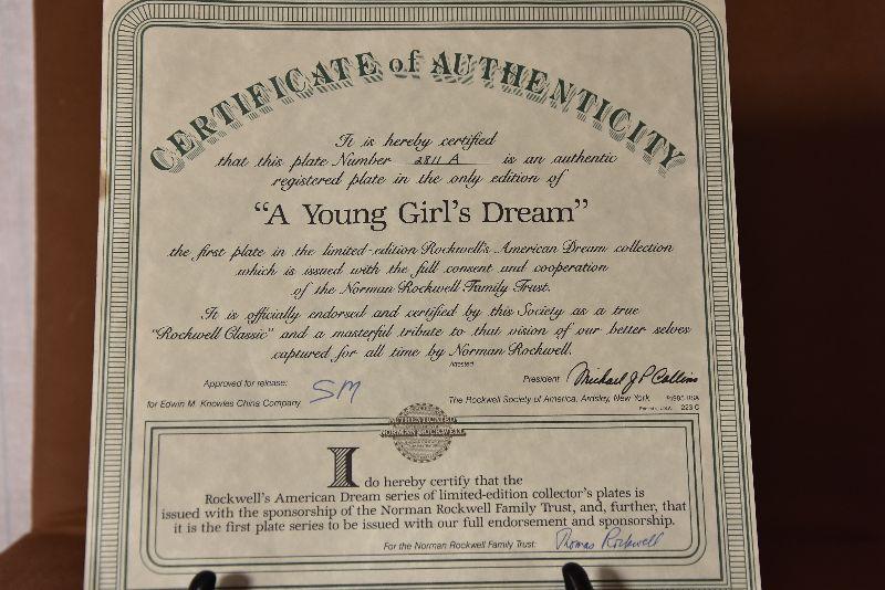 1985 A Young Girl's Dream by Norman Rockwell limited edition first issue in "Rockwell's American Dream". With certificate.