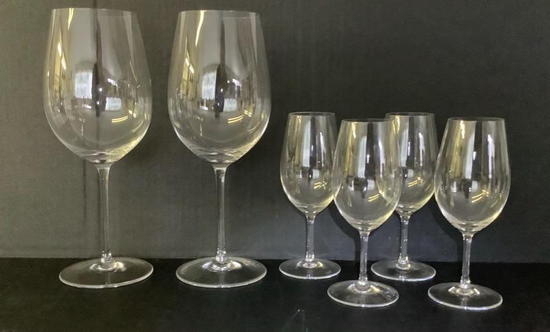 Set of six Riedel wine glasses 2 measure 11” tall and 4 measure 7” tall, no chips or cracks