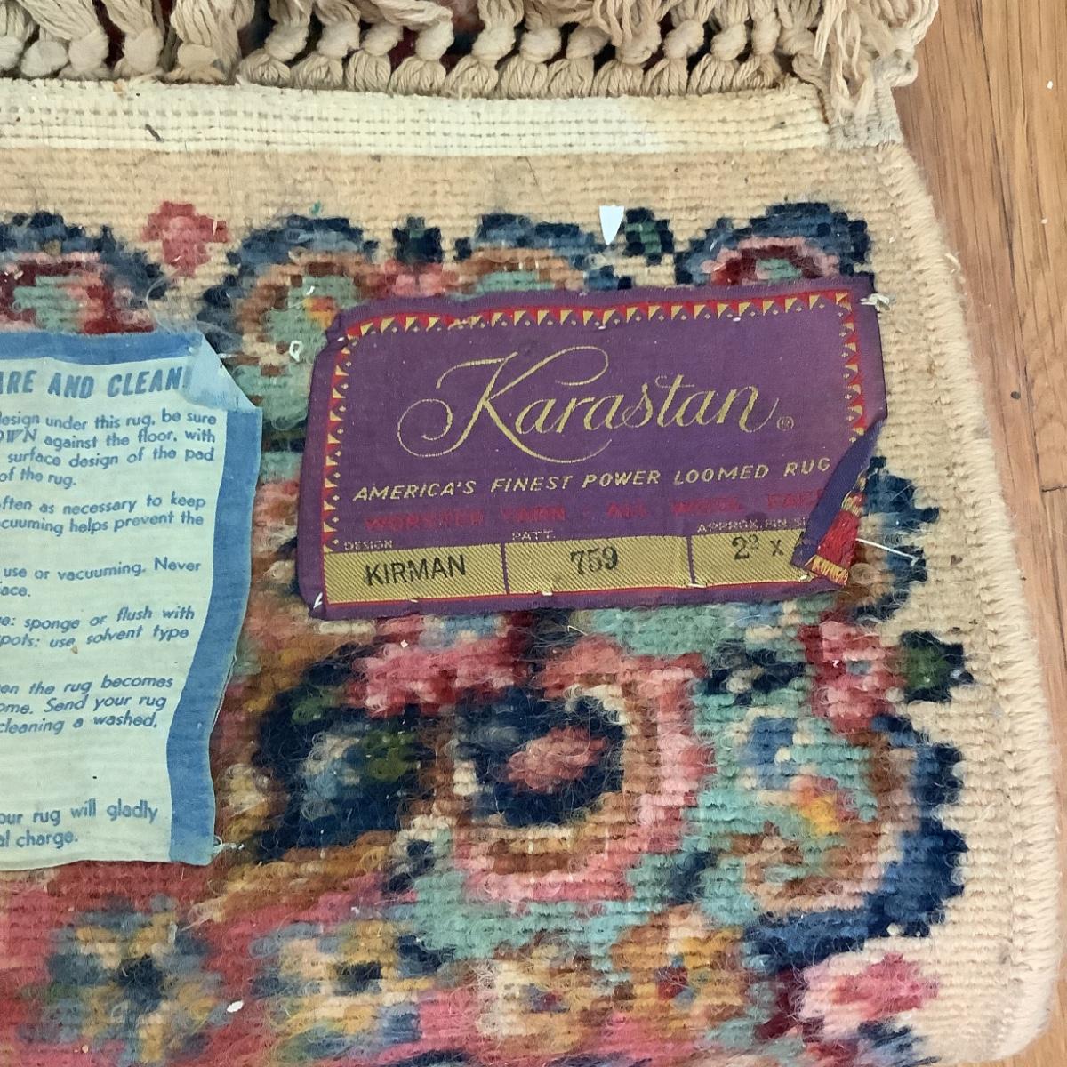 A1021 Vintage Karastan Kirman Wool Rug 2'5" x 4'