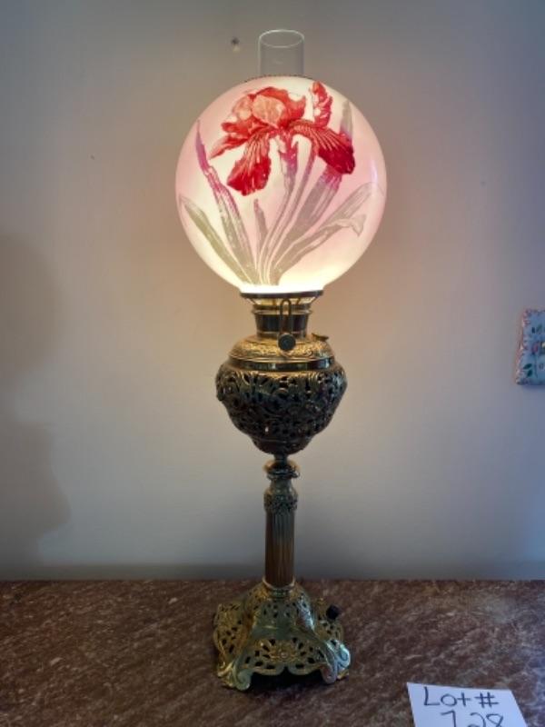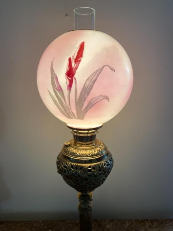 Antique brass Bradley Hubbard piano / banquet lamp 30.5” tall and 7.25” wide.