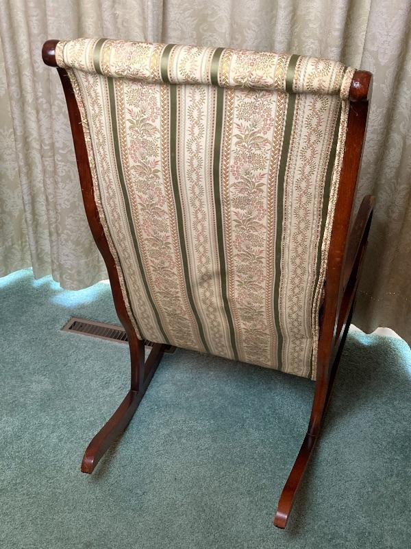 Antique Mahogany Lincoln rocker chair. 21” wide 35” deep 38” high with an 18” seat height