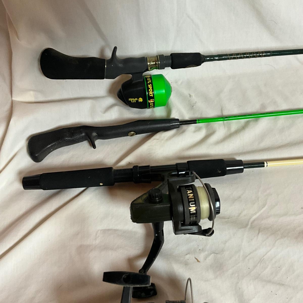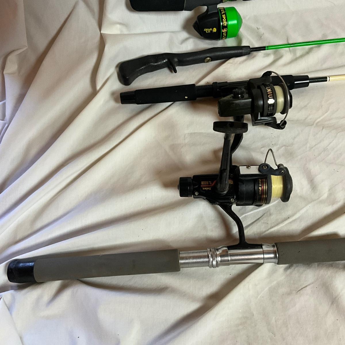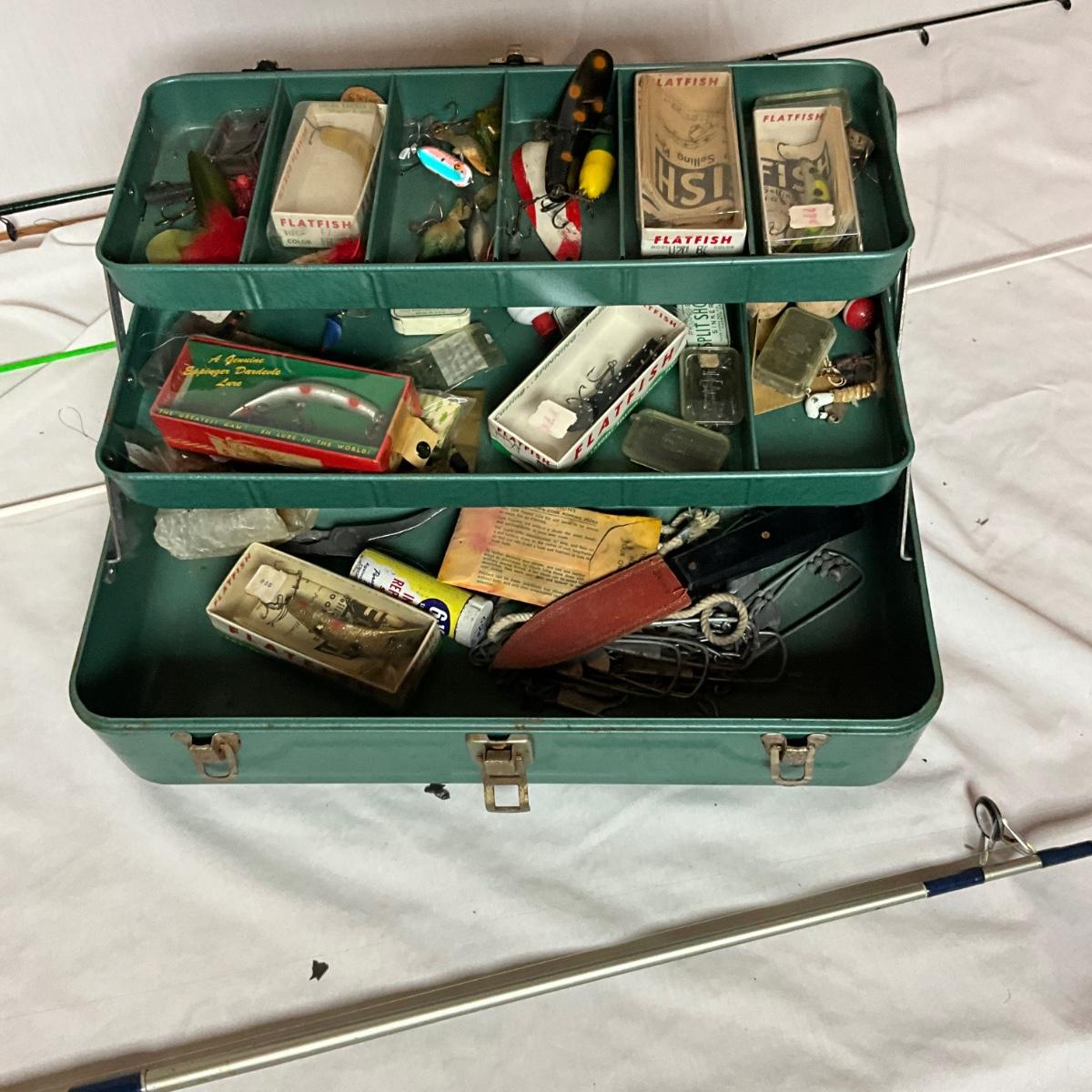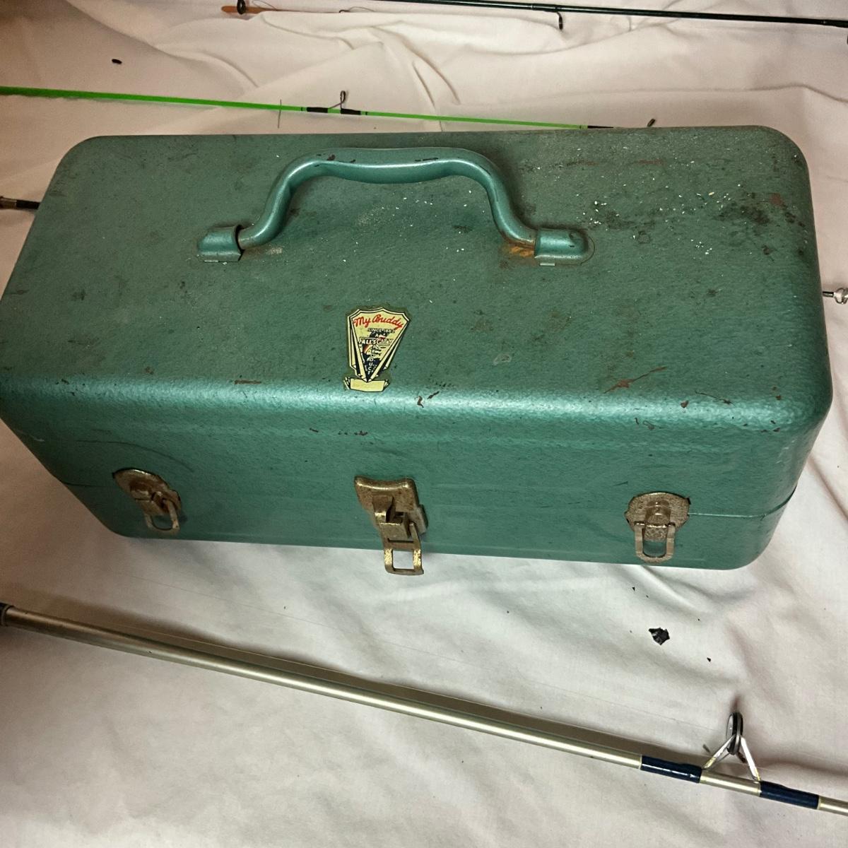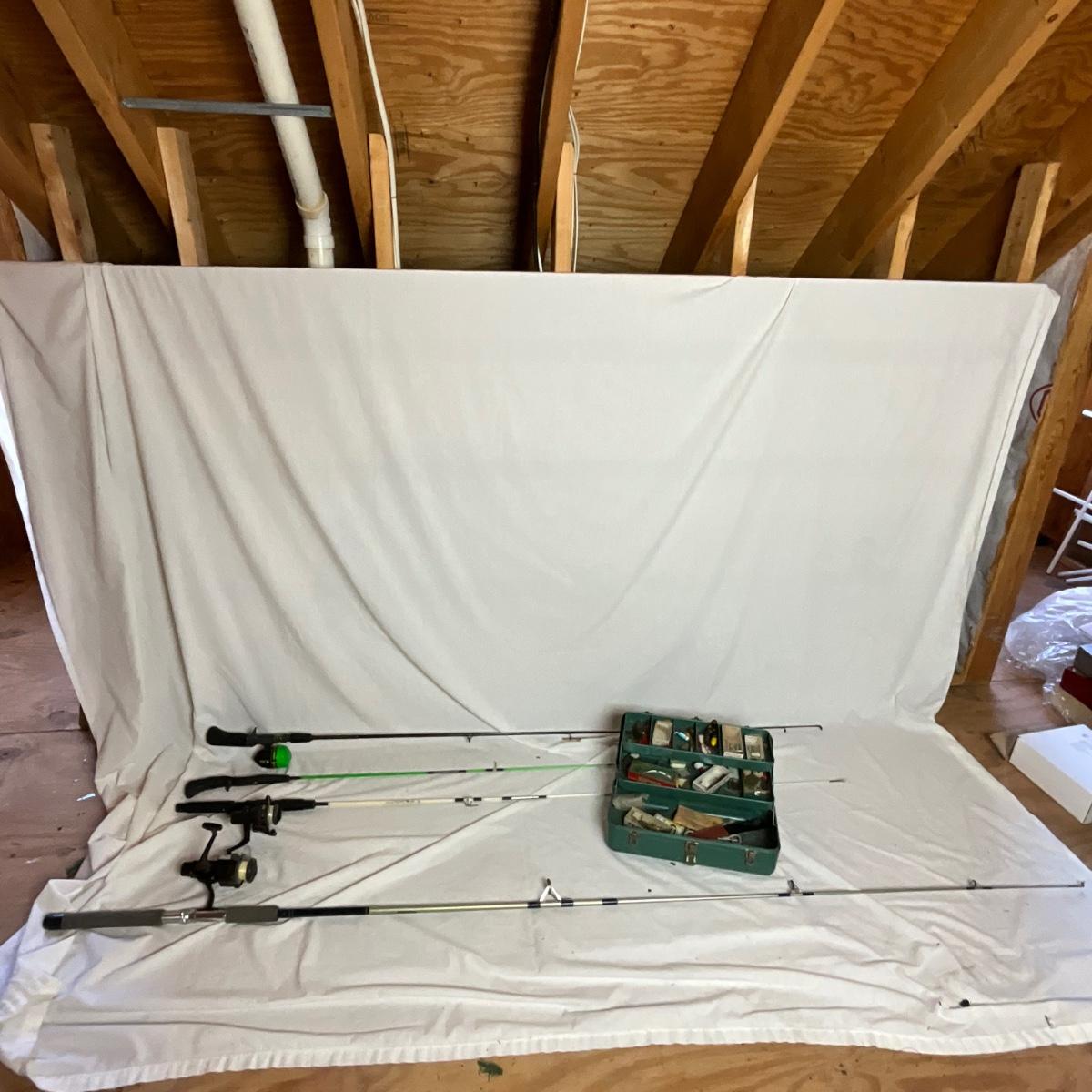 A1432 Fishing Gear Lot: Rods, Reels, and Tackle Box