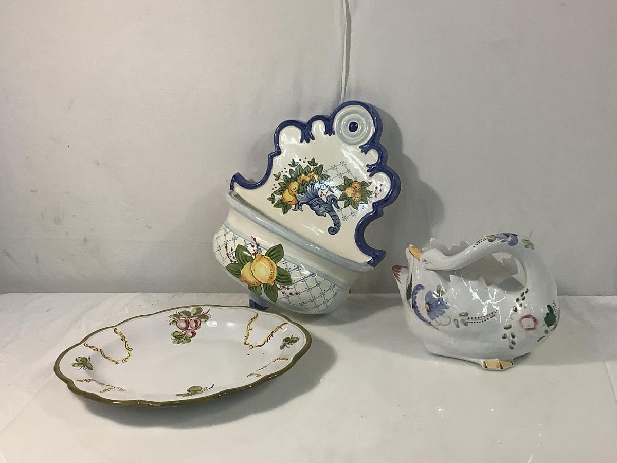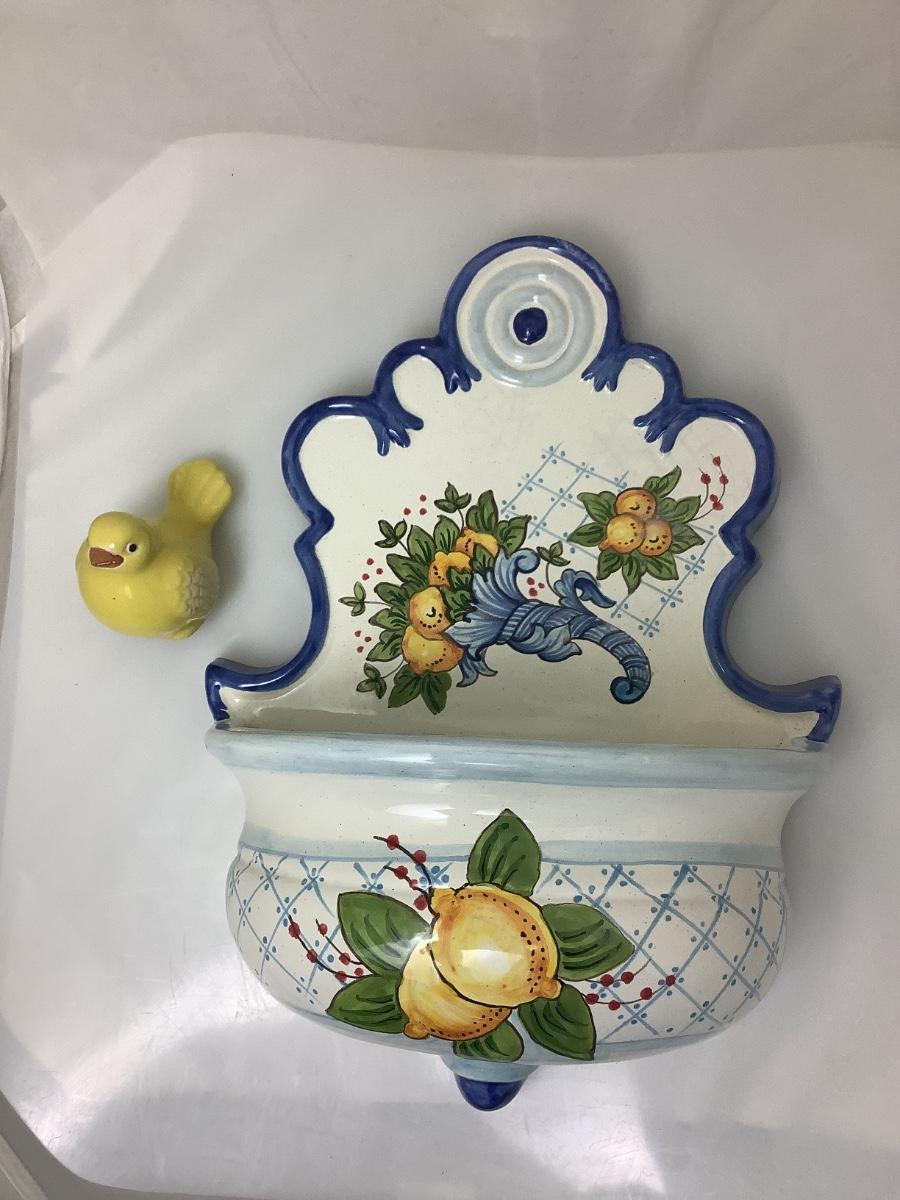 A159 Italian Handpainted Wall Planter, Plate, Duck Bowl