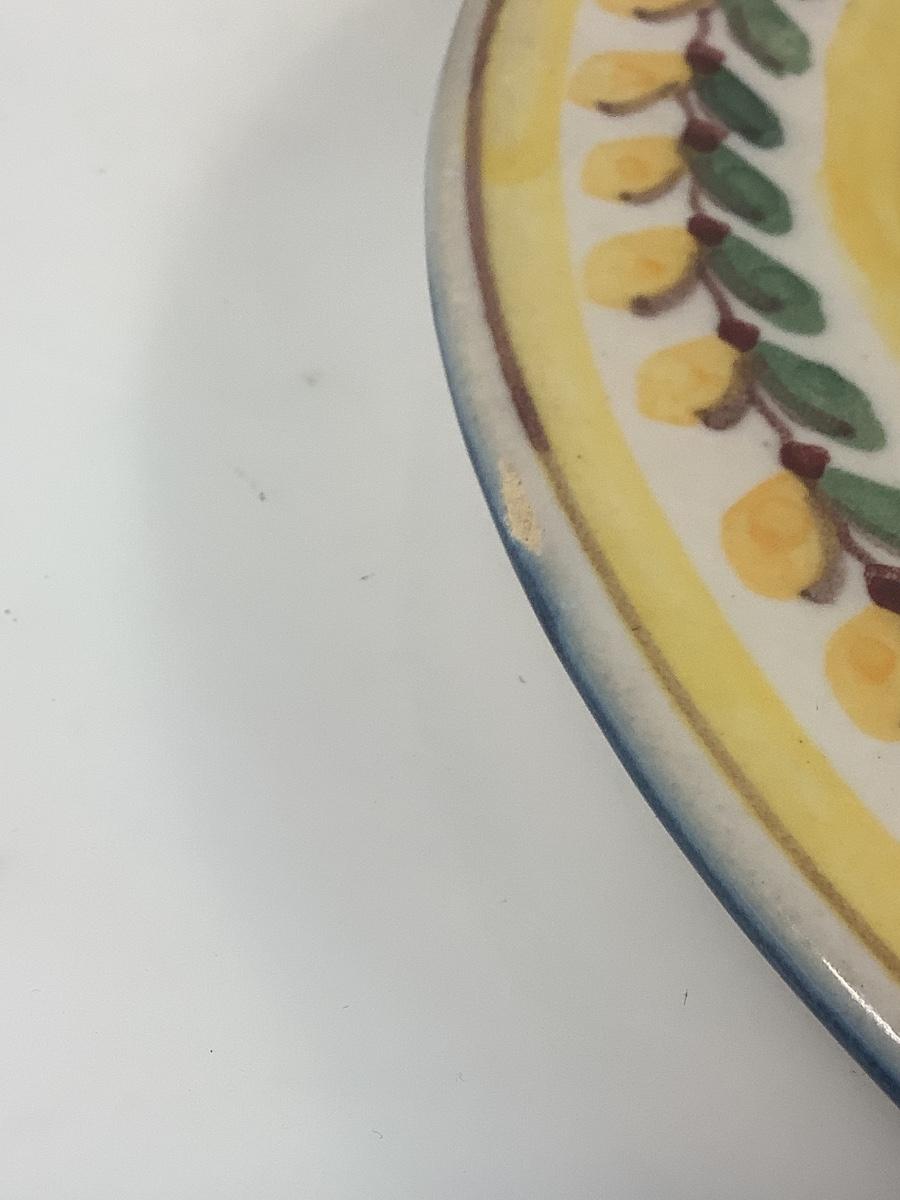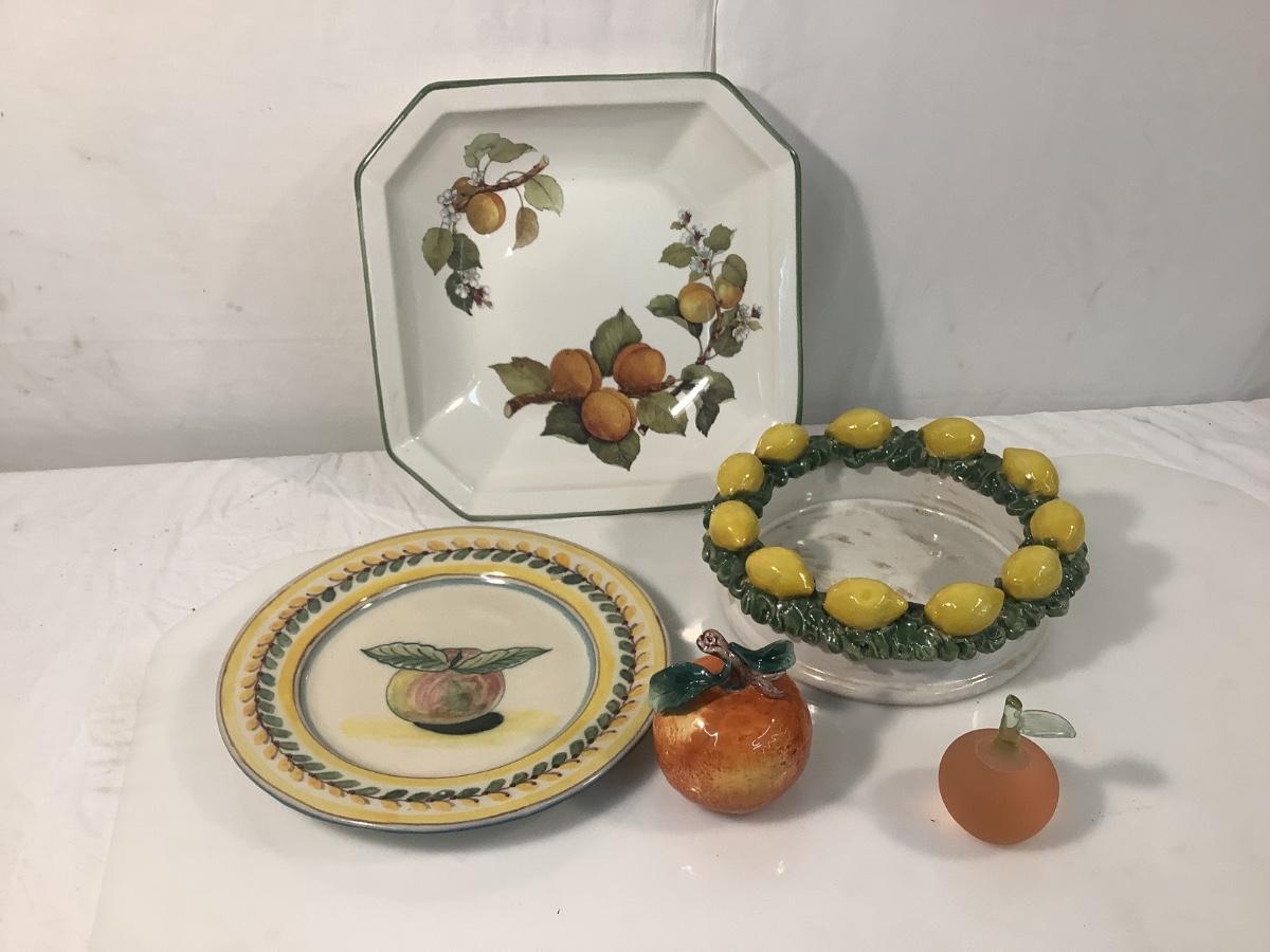 Small nick on plate , lemon fruit bowl is 13" round x 12" round peach plate