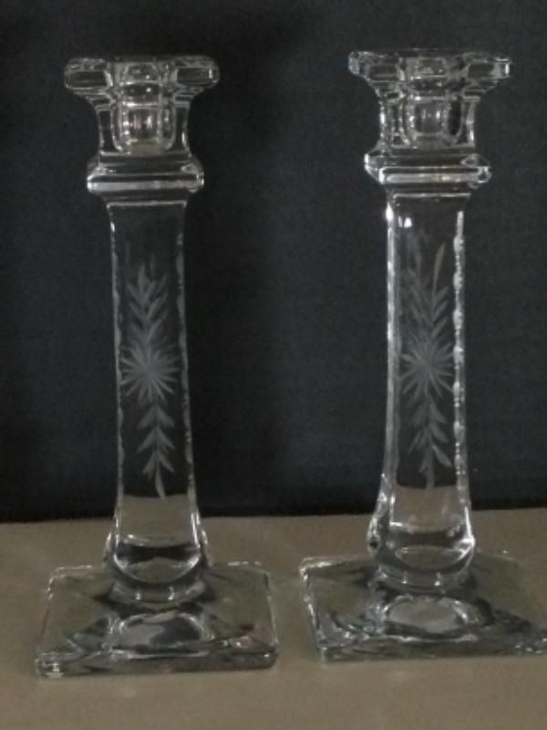 A-199Vintage Glass Swan Bowl Pair of Etched Glass Candlesticks Longaberger Pillar Candle Stand
