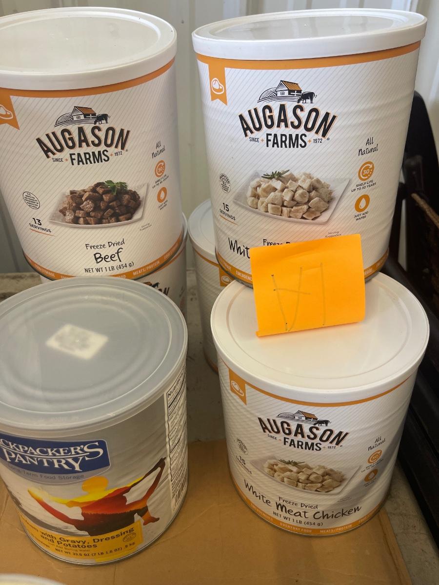 Three are white meat chicken, two beef, one chicken with gravy dressing and potatoes