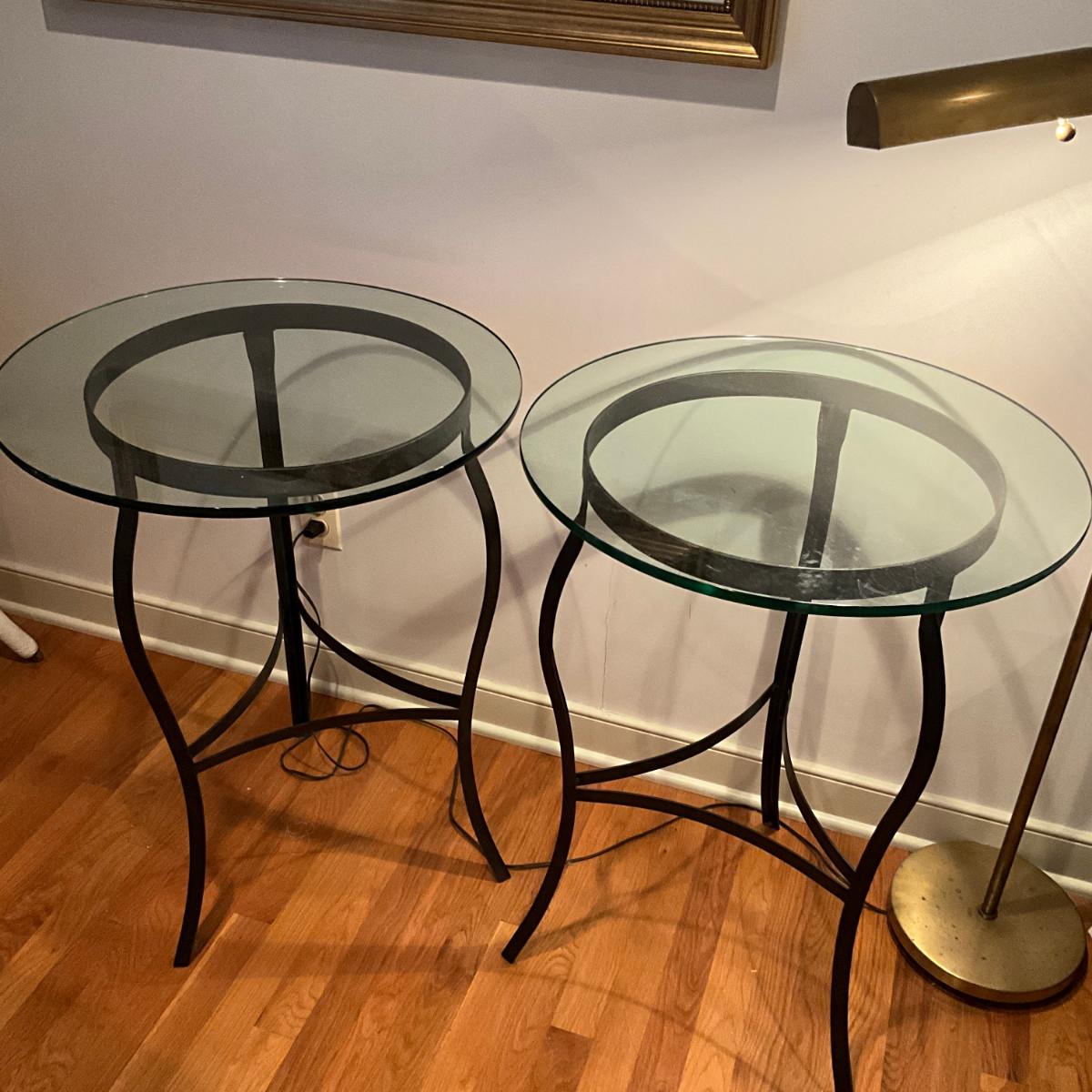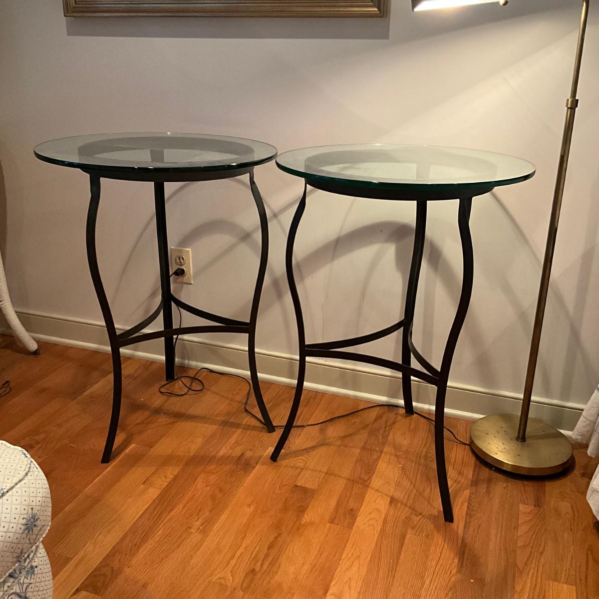 A207 Wrought Iron Glass Top Side Tables