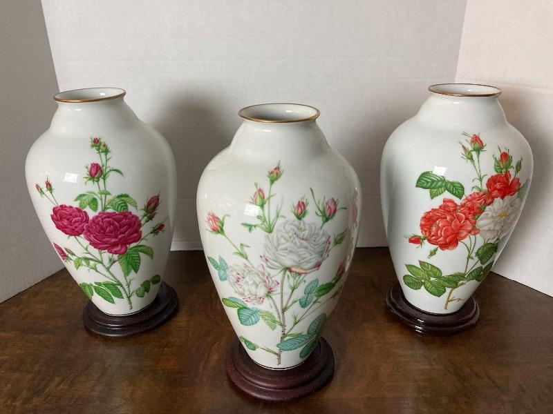 Set of three large Georges Boyer Limoges vases. Vases measure 12” tall