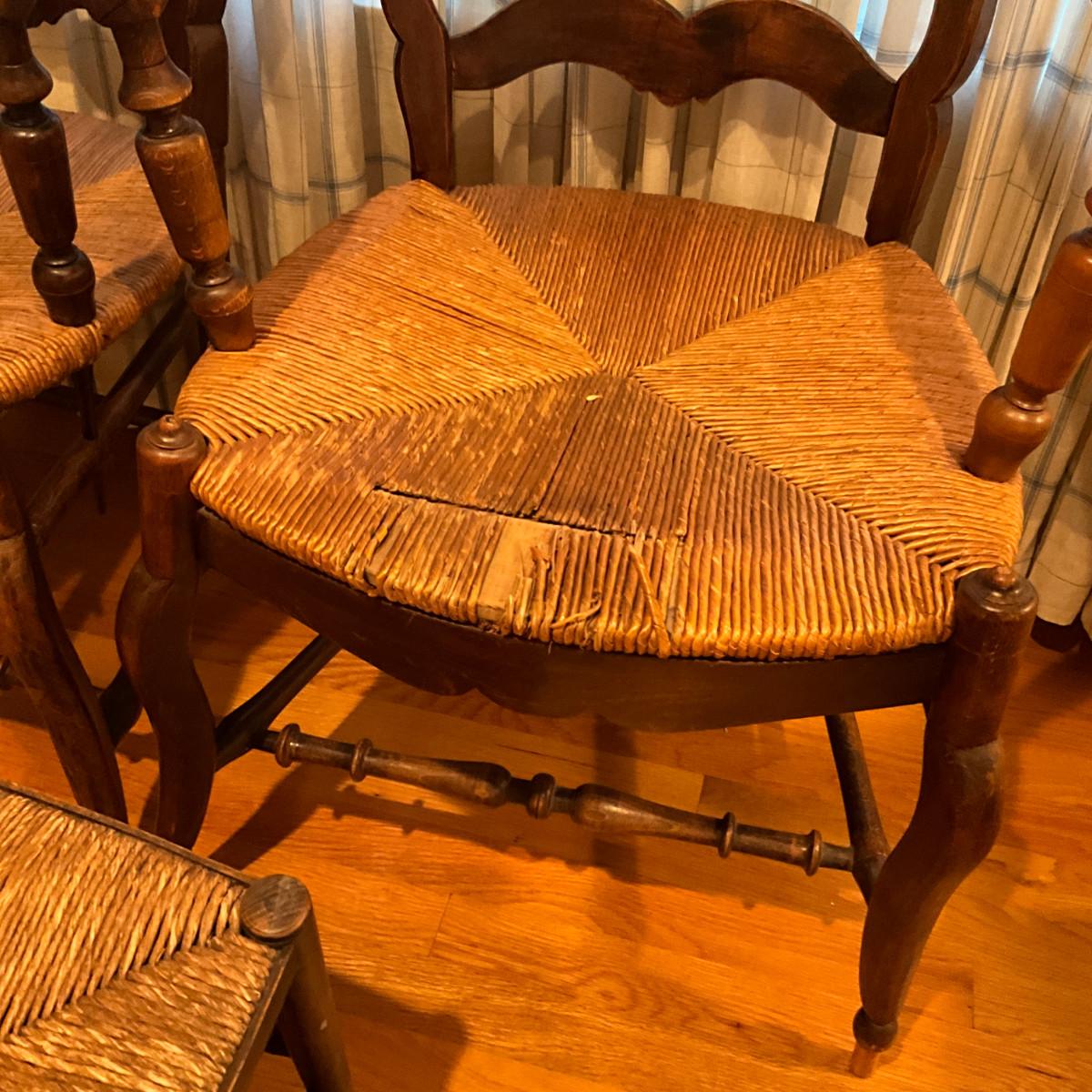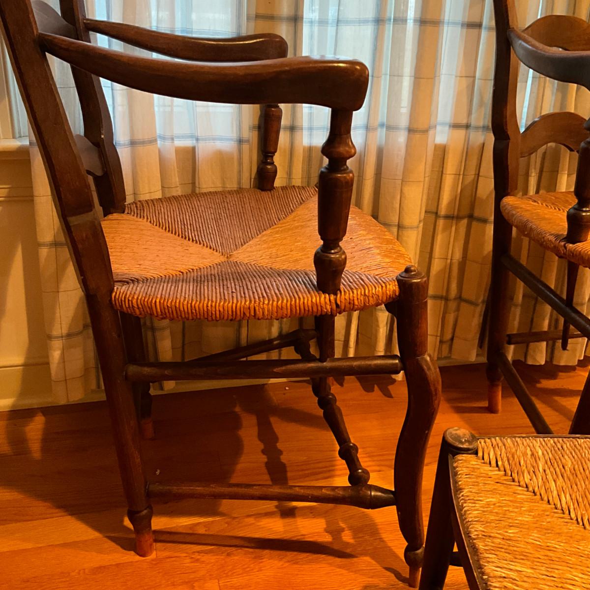 A215 Antique French Country Arm Chairs With Stool