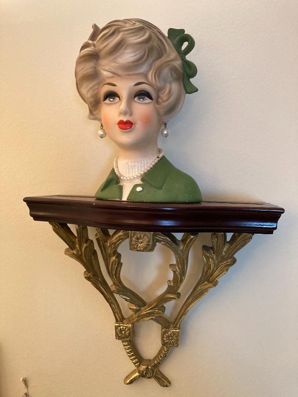 Napcoware Head Vase number C8497. Two small decorative shelves