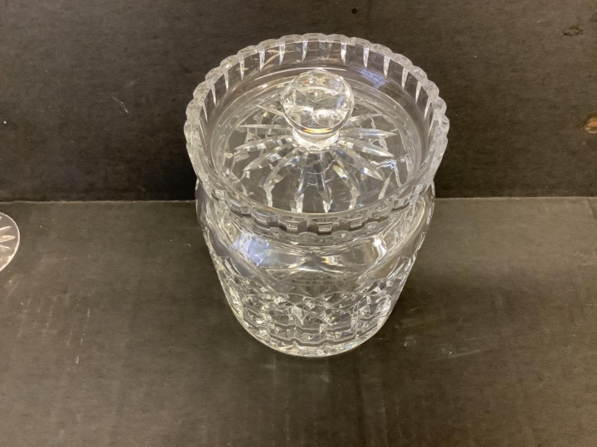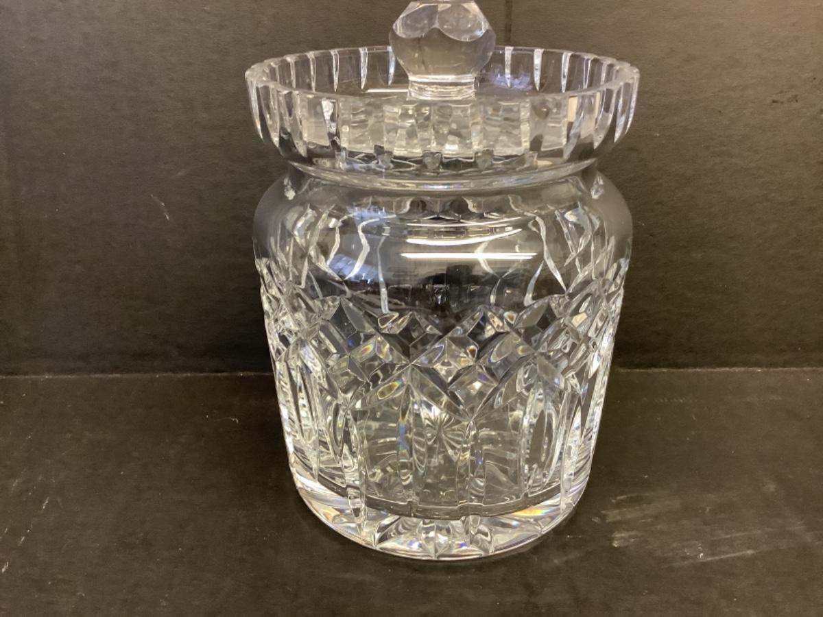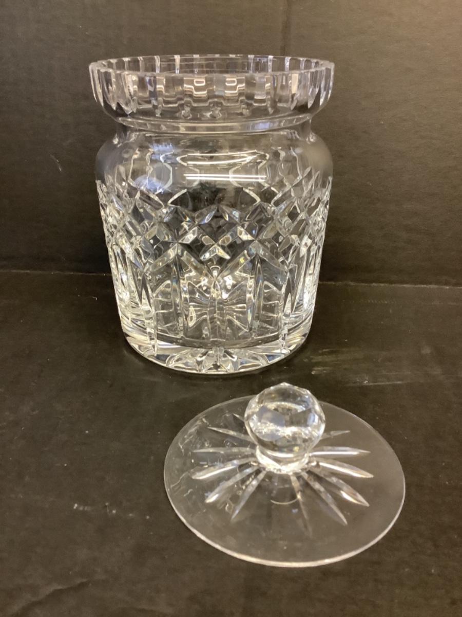 Waterford Crystal Lismore Biscuit Barrel with lid, measures 7” tall including lid, excellent condition