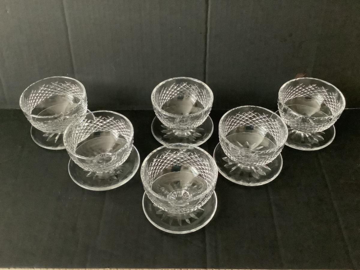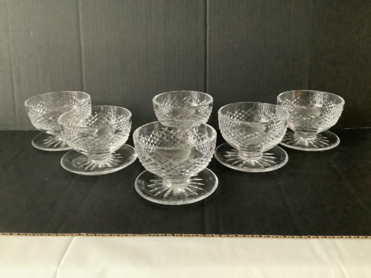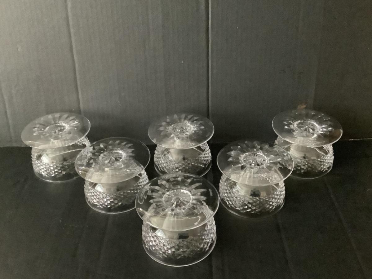 6 Waterford Crystal Alana footed dessert bowls measuring 4” round and 3” tall, all in excellent condition