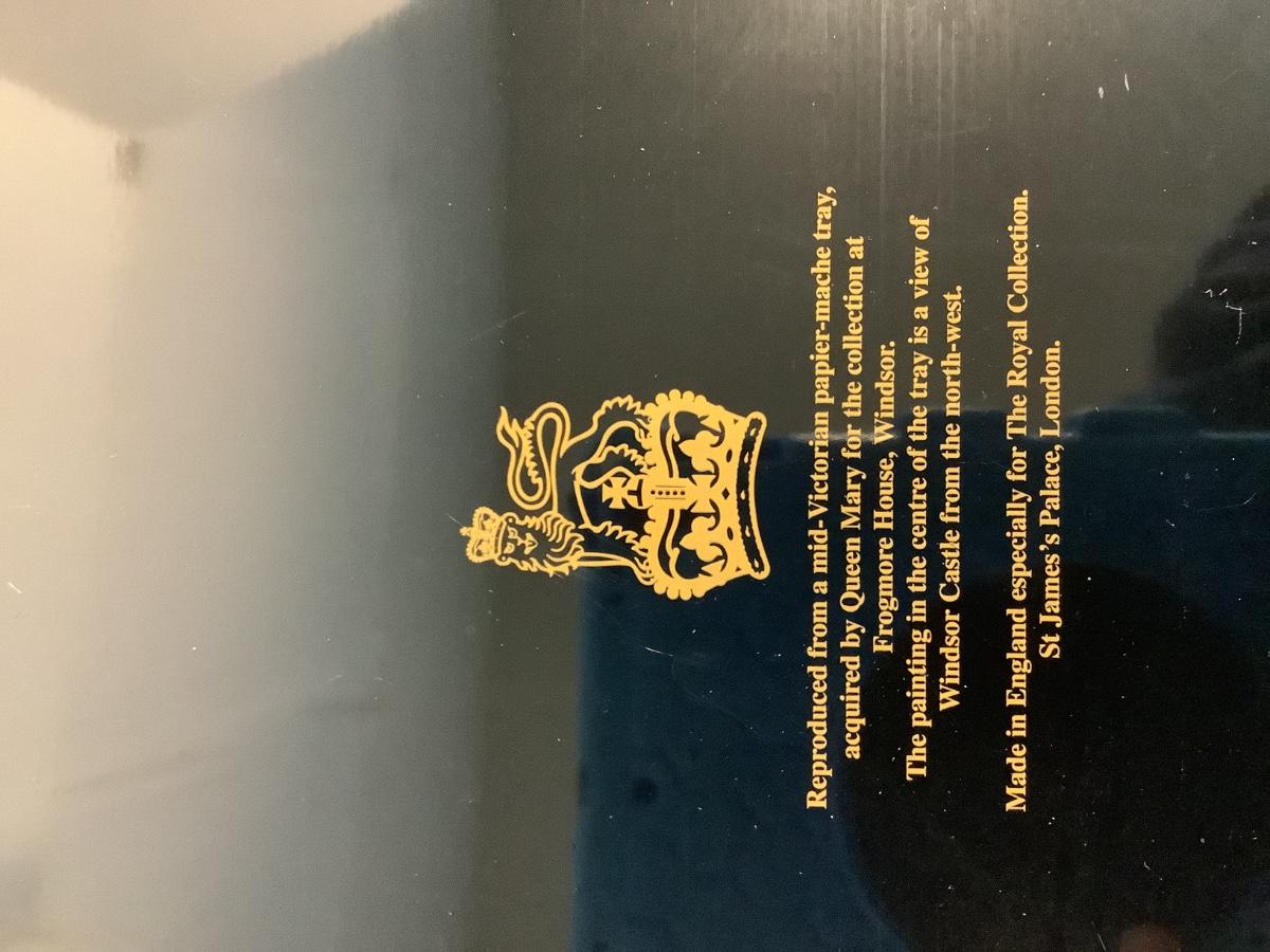 Octagon decoupage style tray measures 21.5" round