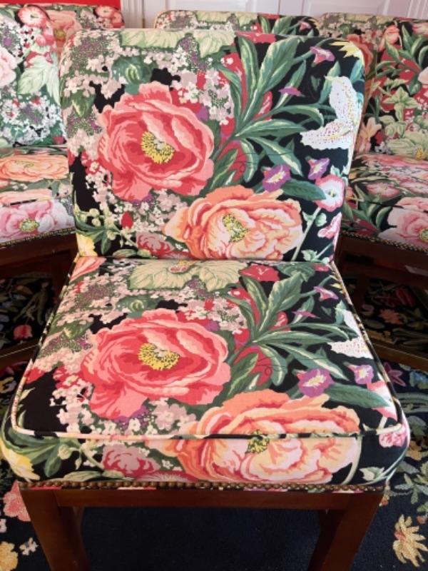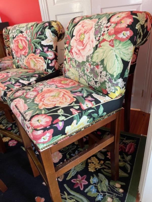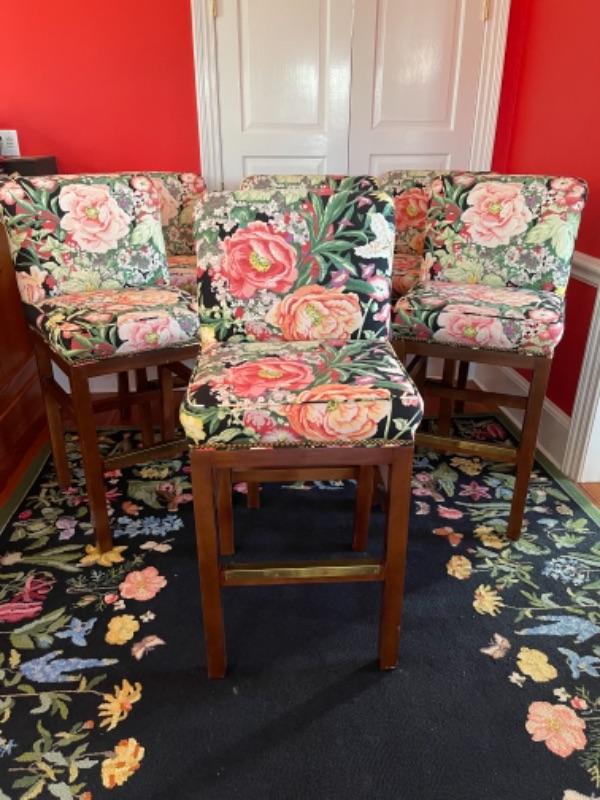 A221 Set of 6 Hunt Galleries Floral Upholstered Bar Stools