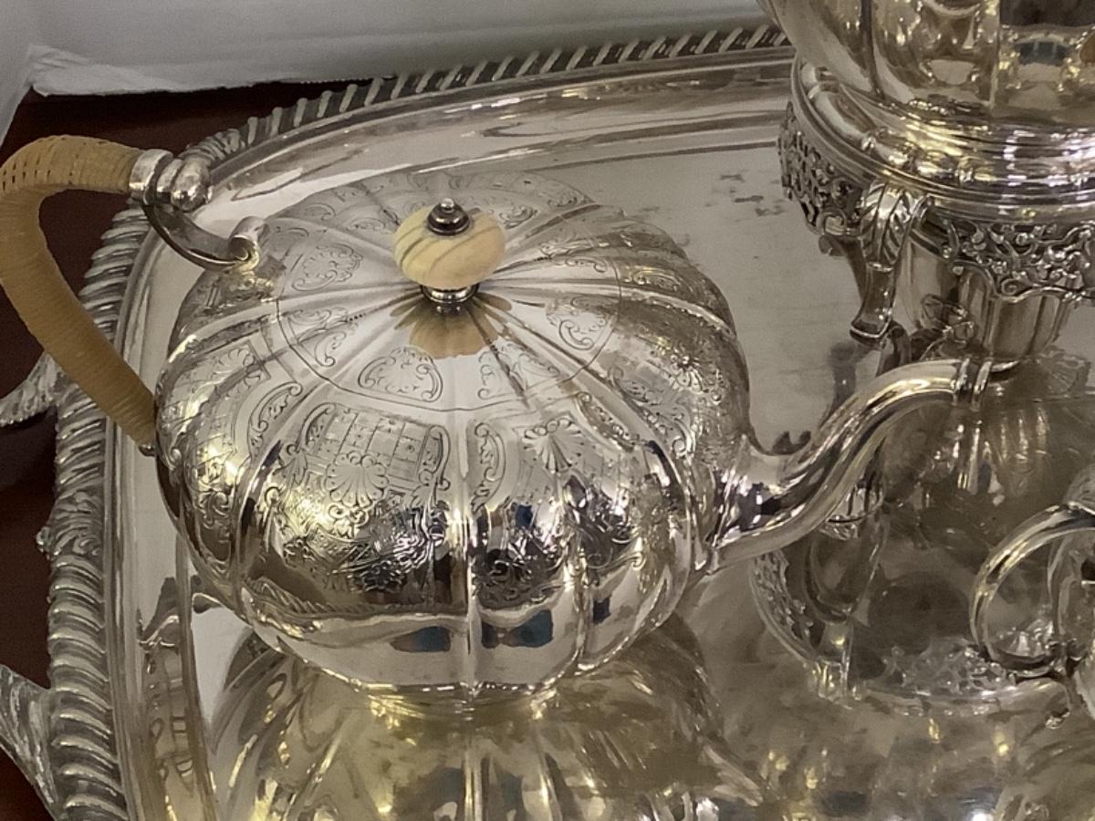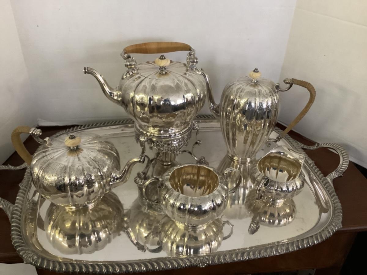 A2256 Elkington & Co. Five Piece Silver Plate Tea Set with Tray