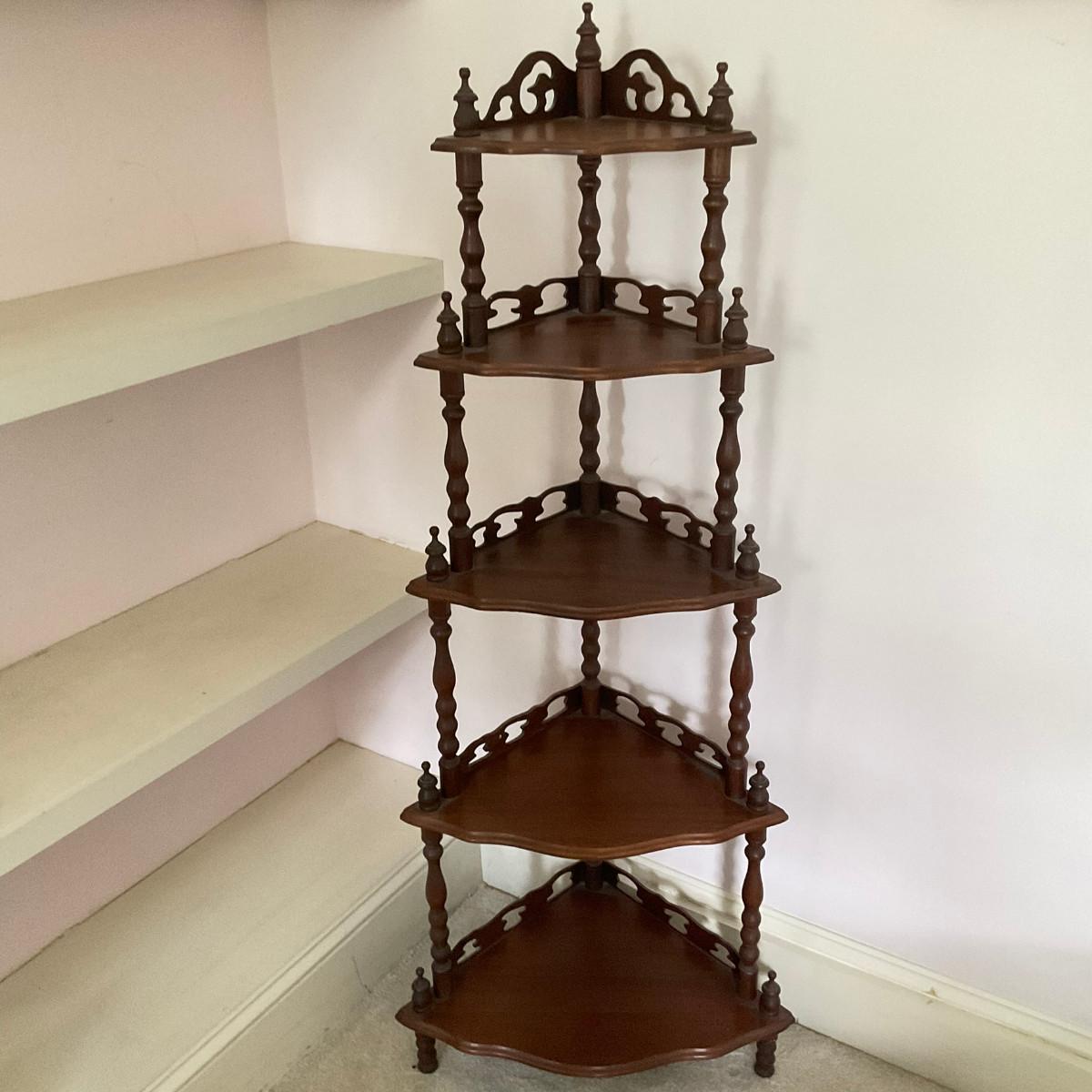 A240 Vintage Wooden Corner Whatnot Graduated Shelf