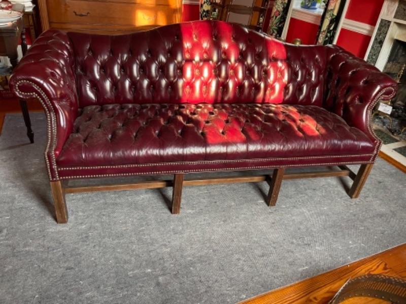 A248 Hickory Leather Chesterfield Style Burgundy colored Sofa