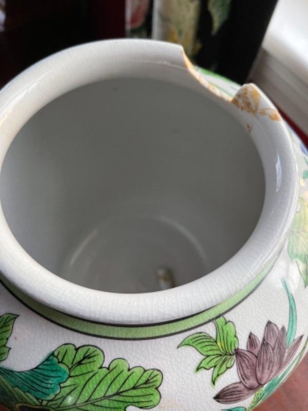 Bowl measures 9.5” round and jar is 13” tall with damage