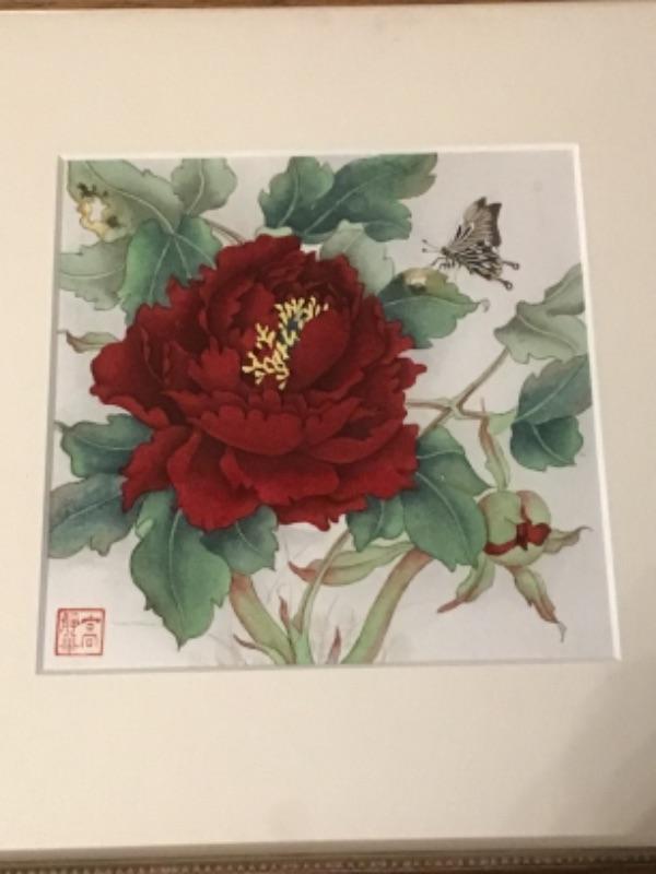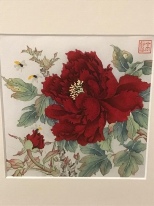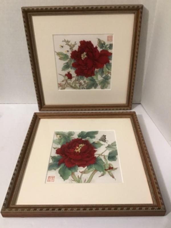 Pair of Oriental Floral Artwork watercolor on rice paper by Jinghua GAO Dalia measuring 11” x 11”
