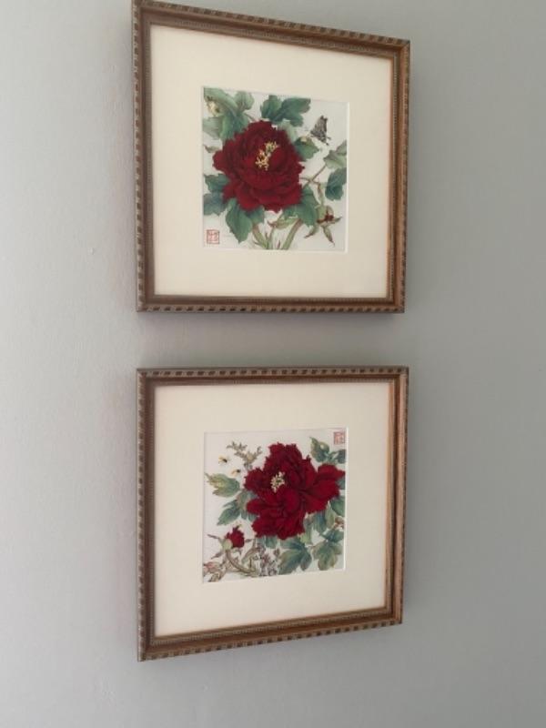 A - 403: Pair of Oriental Floral Watercolors by Jinghua Gao Dalia