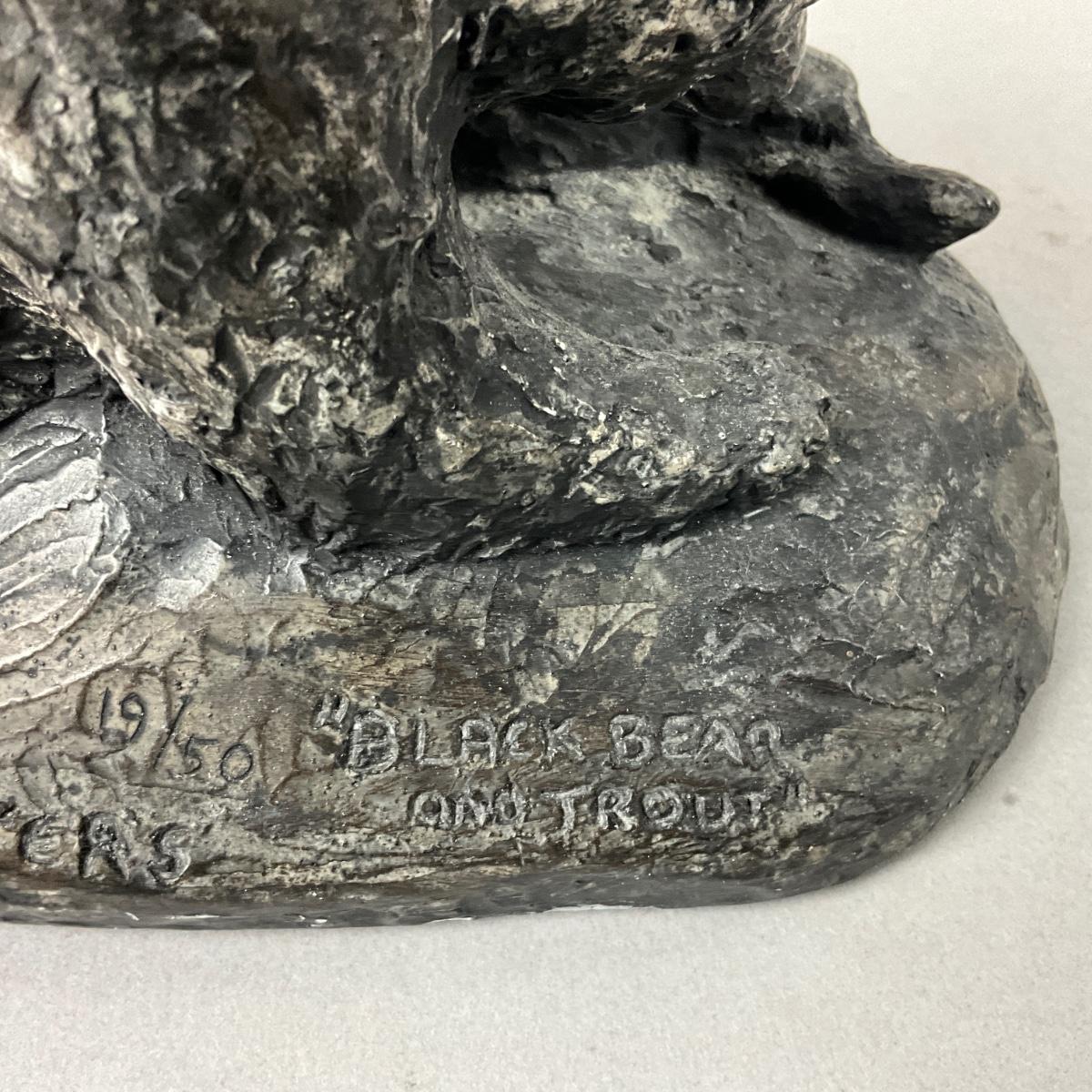 A415 Vintage Bear and Trout Sculpture Signed and Numbered