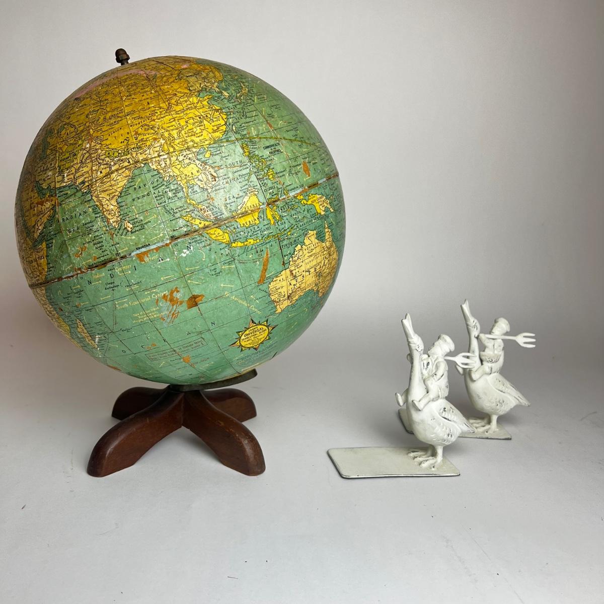A524 Vintage Desk Globe with Metal Bookends