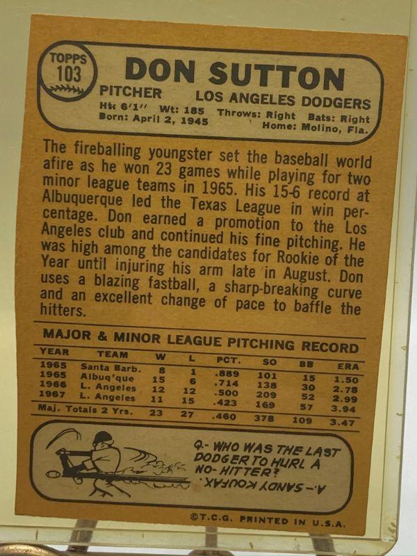 A57: Don Sutton 1968 Topps 2nd Yr. Card #103
