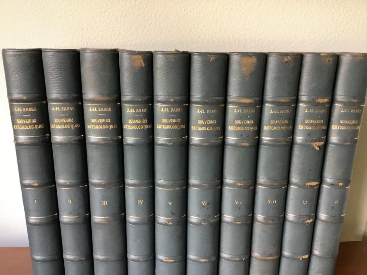 10 volume set of J.H. Fabre Souvenirs Entomologiques books written in French